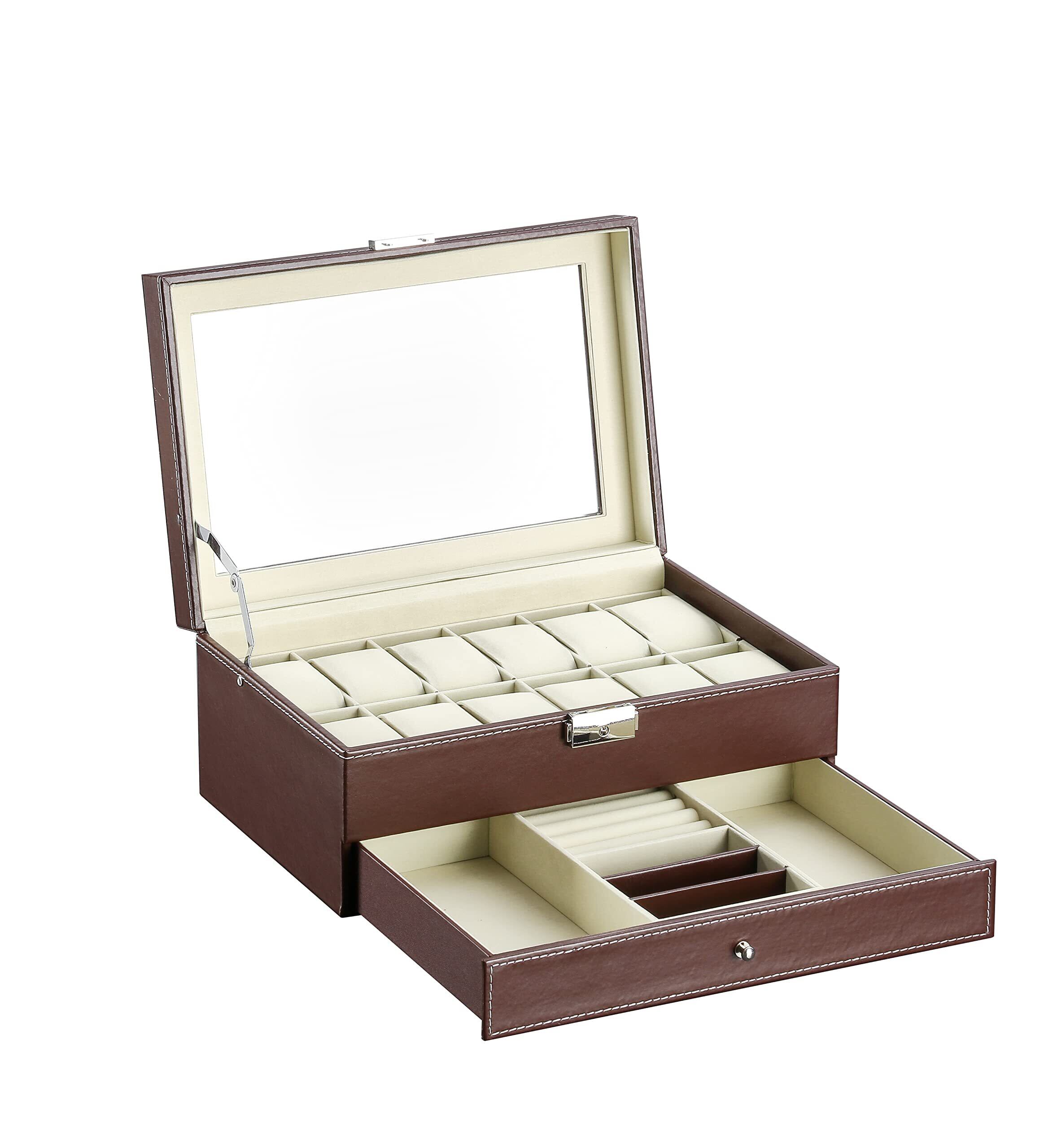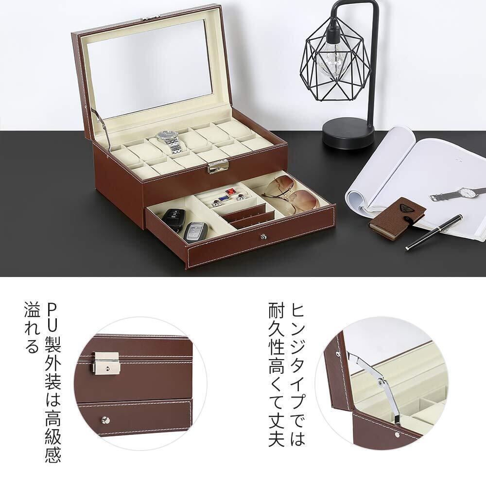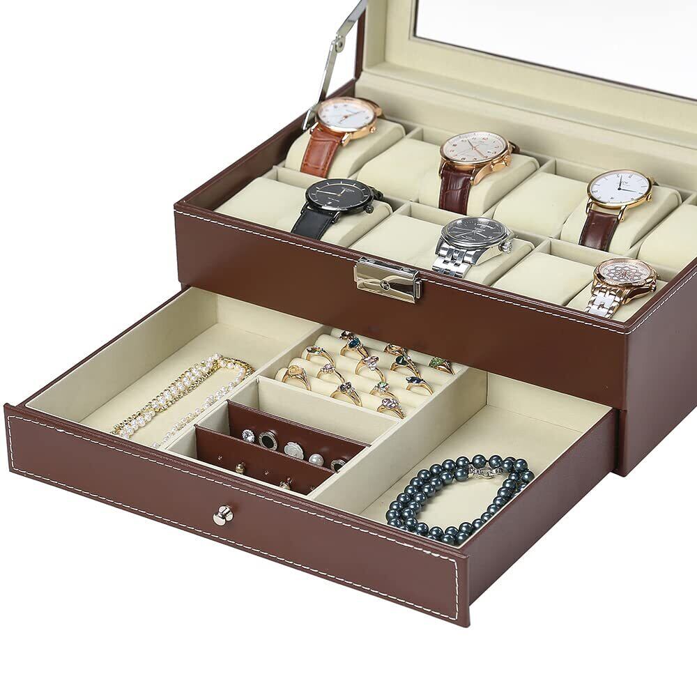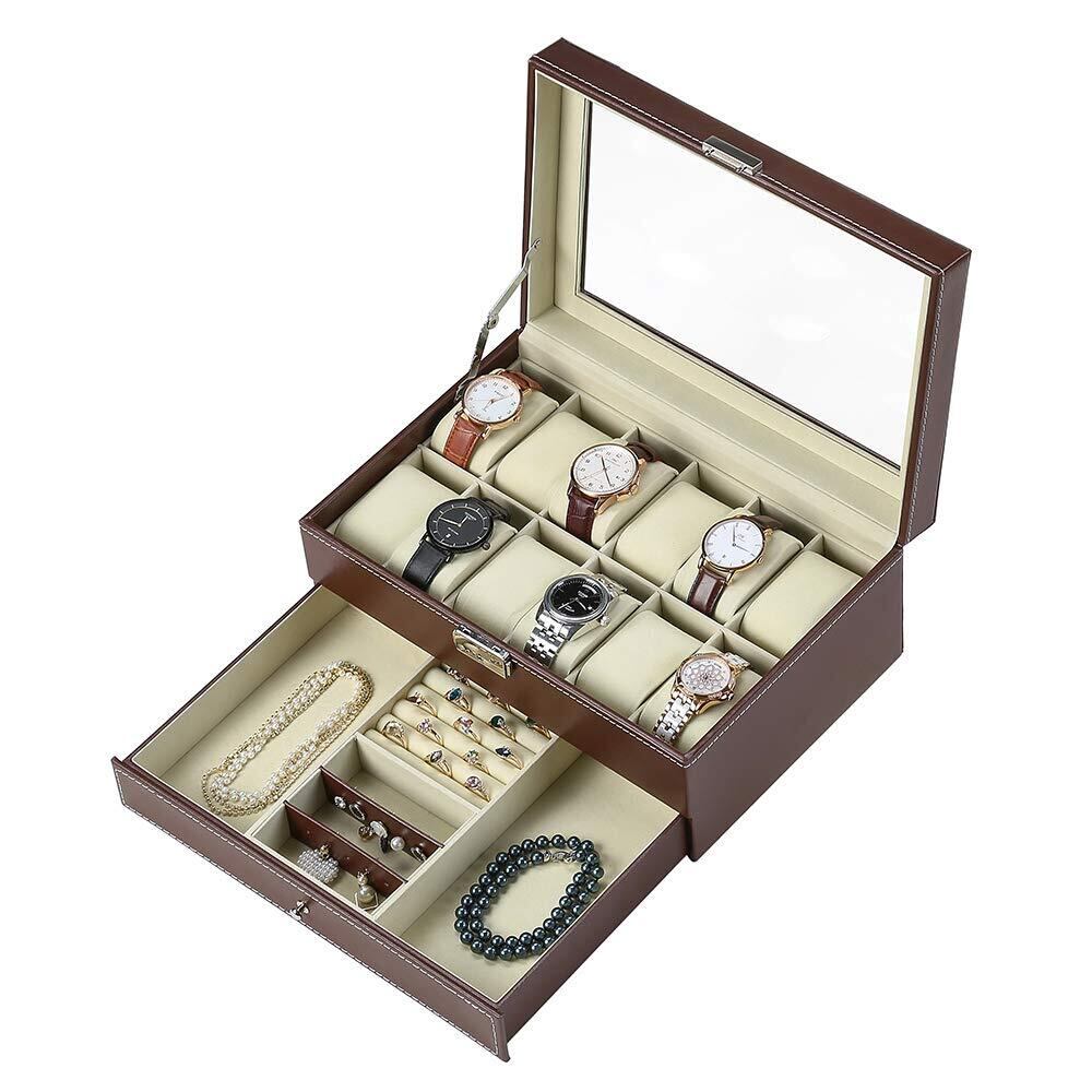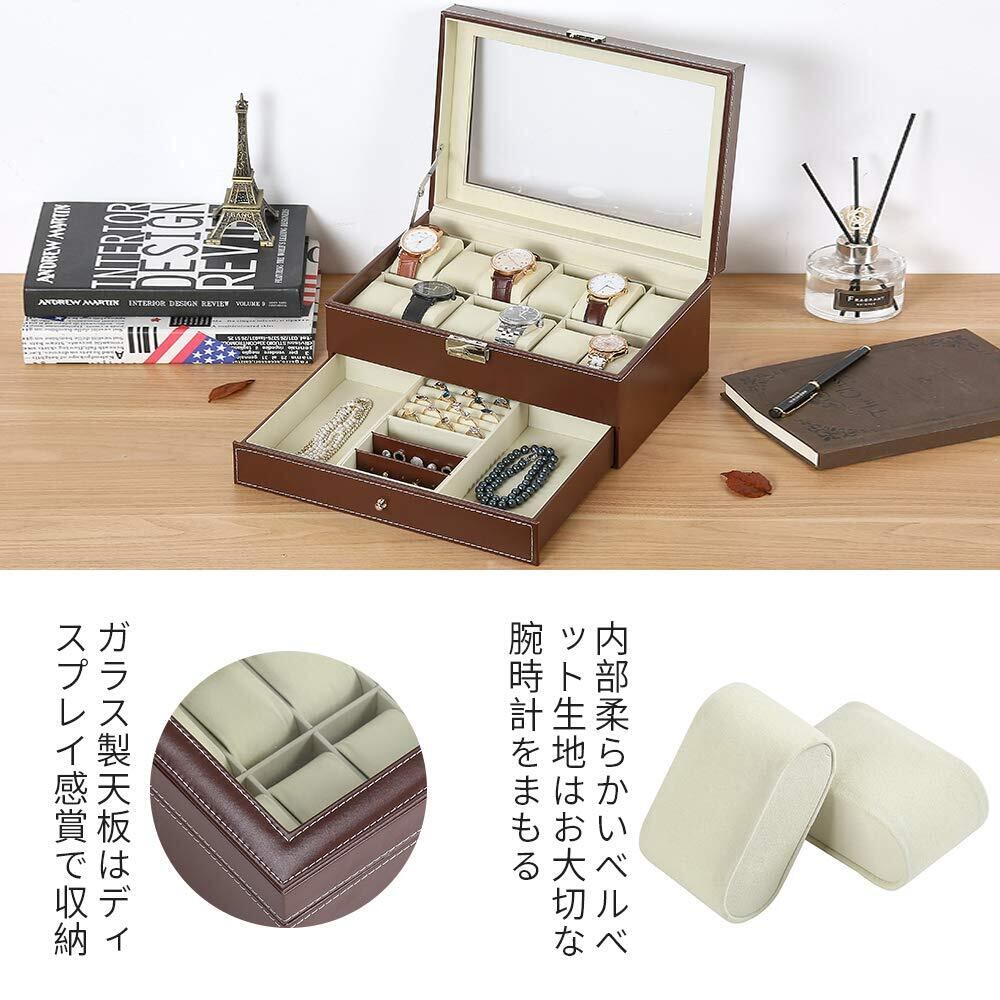 腕時計収納ケース アクセサリー 収納 時計ケース 12本 時計 収納ボックス 2段式 高級 ウォッチ 収納ケース コレクションケース PUレザー製… (12本 2段式-ブラウン)