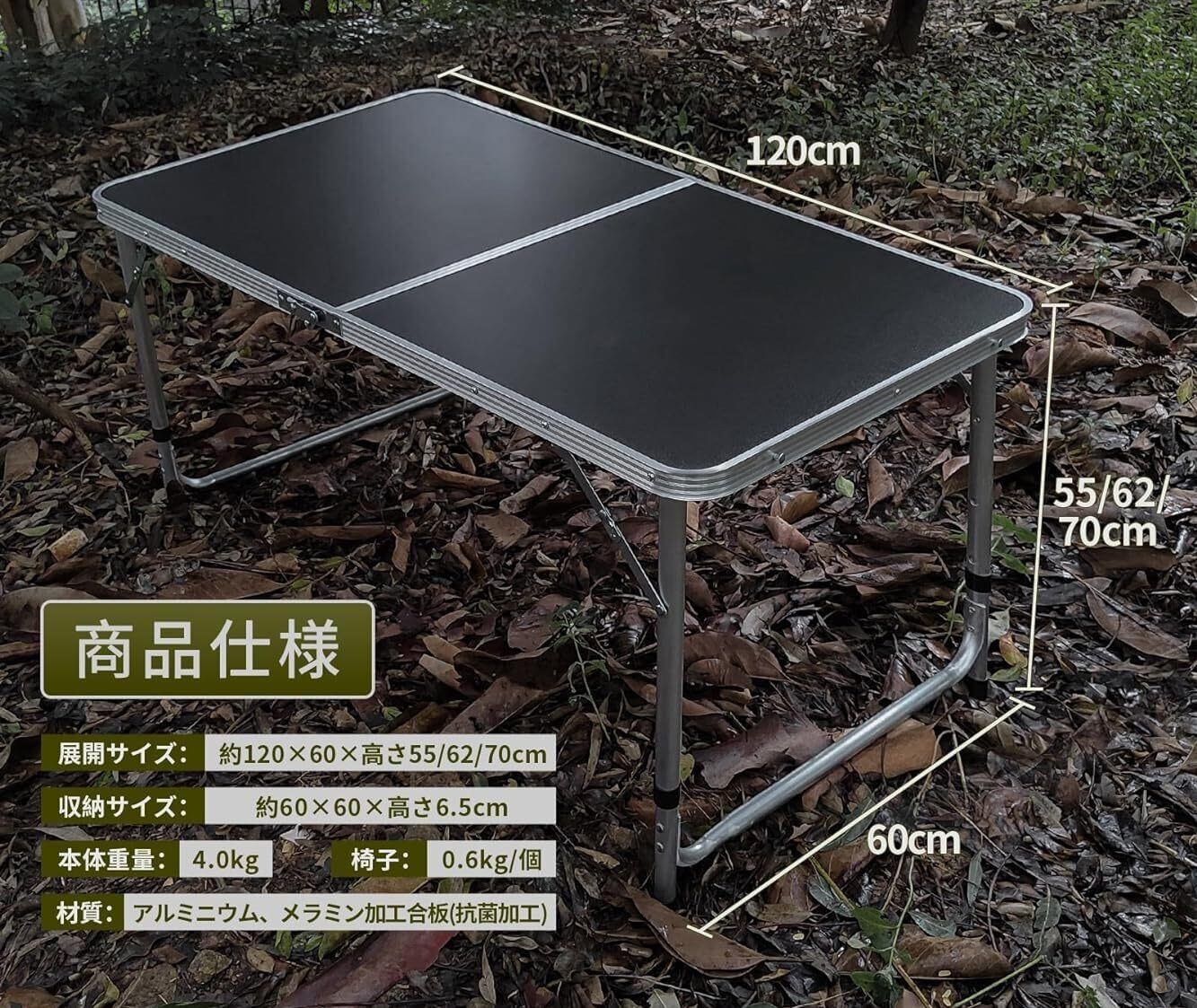 Taimonik アウトドア 折りたたみ テーブル 120cm キャンプ テーブル 高さ3段階調整可能 組立不要 折り畳み 軽量 携帯便利 コンパクト 収納 ピクニック レジャー キャンプ用 LK
