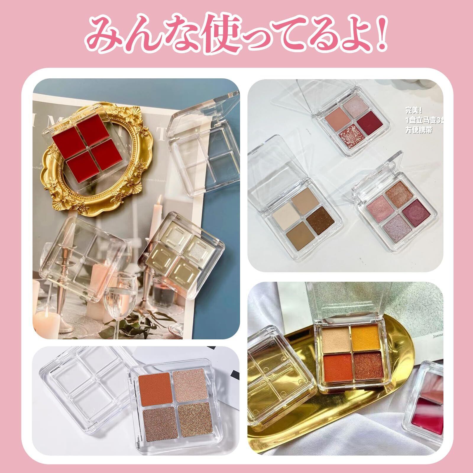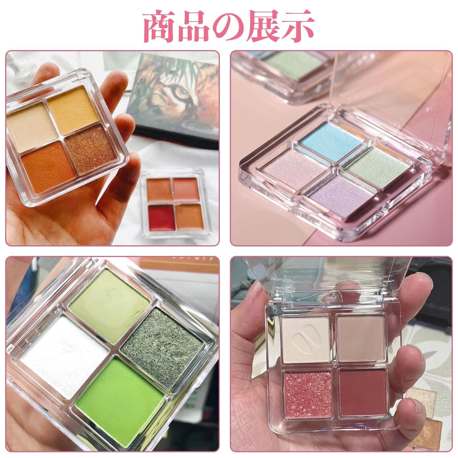 【アイシャドウケース】アイシャドウケースは4つのグリッドが設計されており、異なる色を保存することができ、簡単で精緻で、透明カバーが付いて、完全に密封して漏れを防ぐことができる。自分で化粧品を作るのが好きな人におすすめです。