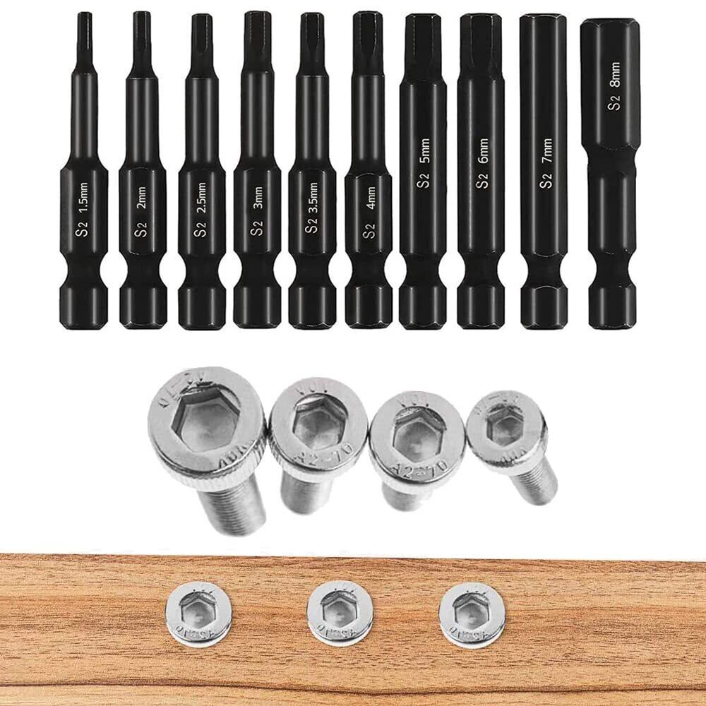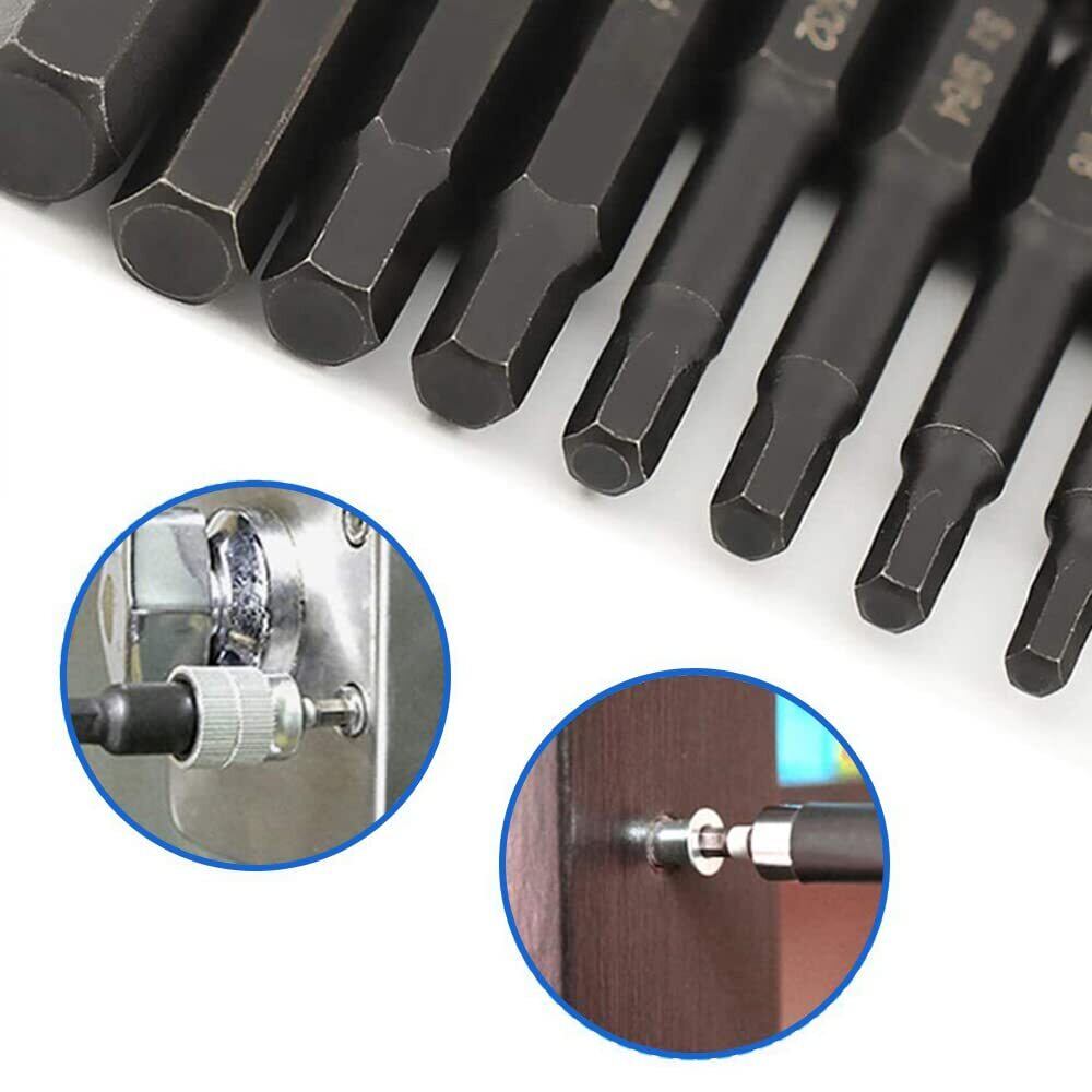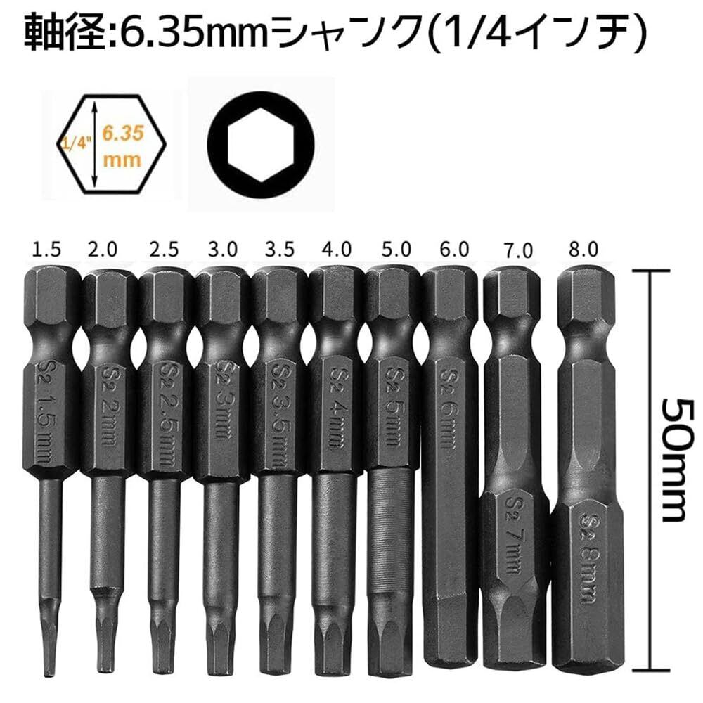 六角ビット ドライバービットセット 6.35mm 10本入り 1.5mm~8mm 六角レンチビットセット 磁気スクリュードライバビット