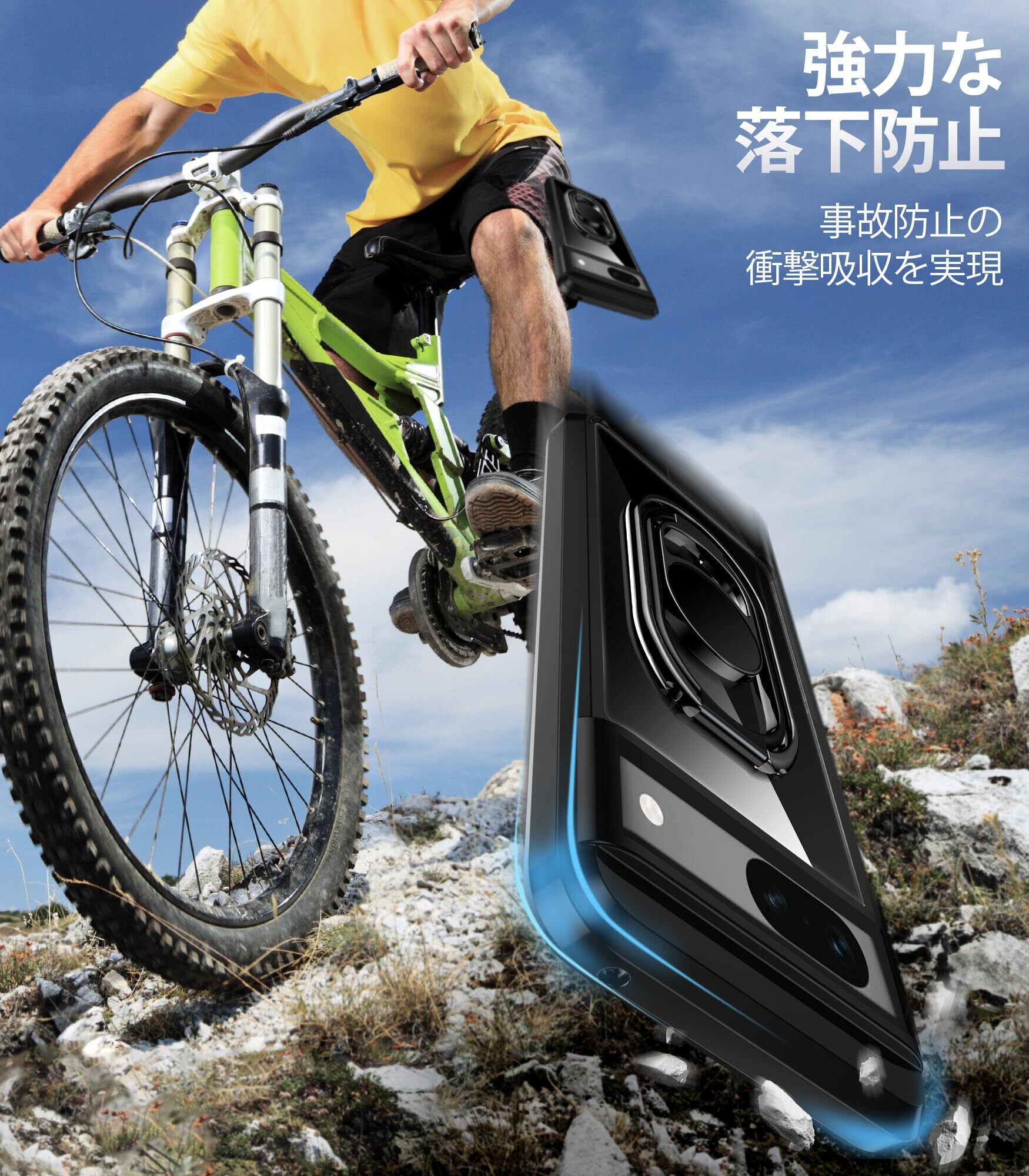 Pixel 8A 5G ケース スマホリング スマホグリップ 角度調節可能 折り畳み 耐衝撃 スタンド機能 軽量 落下防止 スマホケース グーグルピクセル8A カバー - ブラック