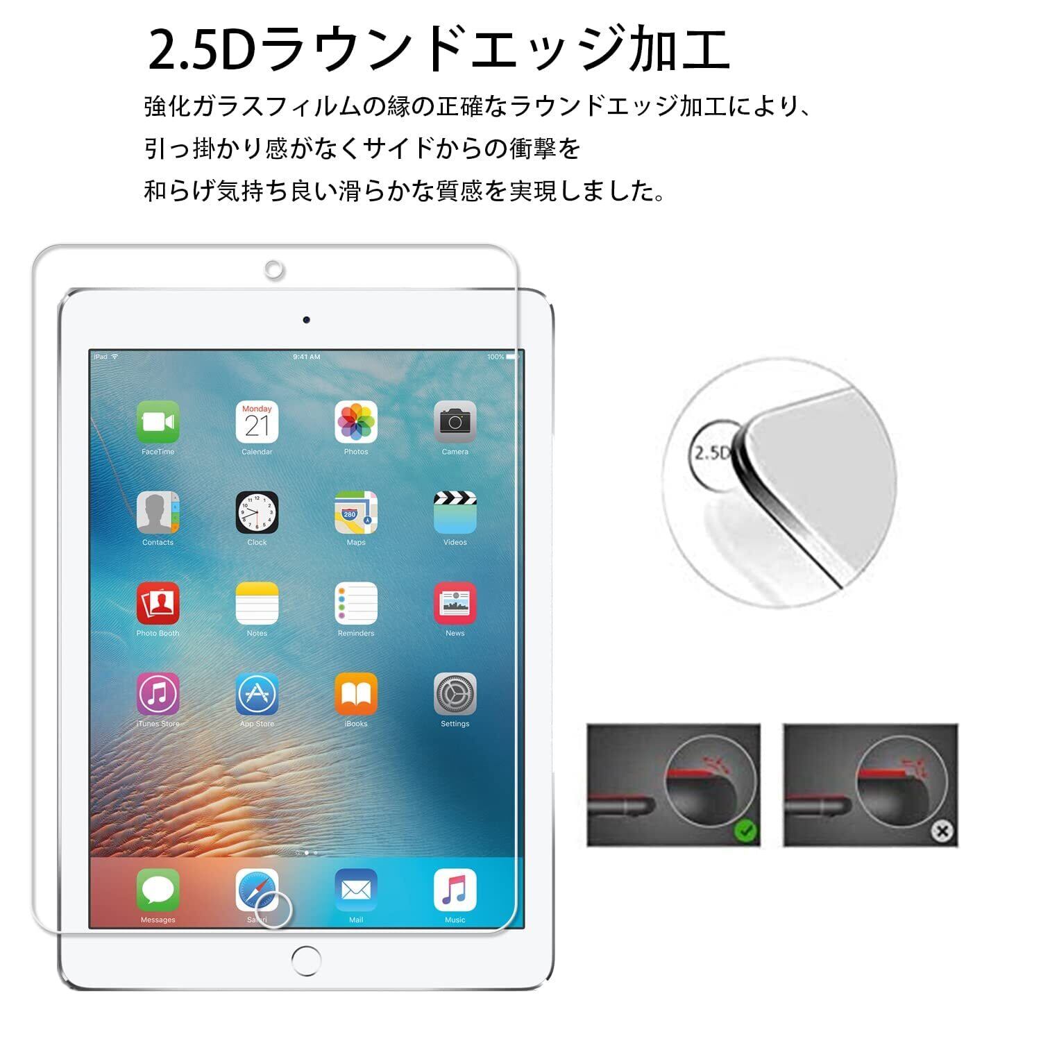 【対応機種】ipad 9.7 インチ / 5世代2017 / 6世代 2018 / iPad Air 2 / iPadAir 2013 / iPad Pro 9.7 専用 ガラスフィルム。【注意】この電話の画面の端は湾曲しているため、保護フィルムのサイズが丁度良い場合、しっかりと貼り付けられず、白いエッジやシェルとの干渉などの問題があるため、保護フィルムは画面よりも小さいです。