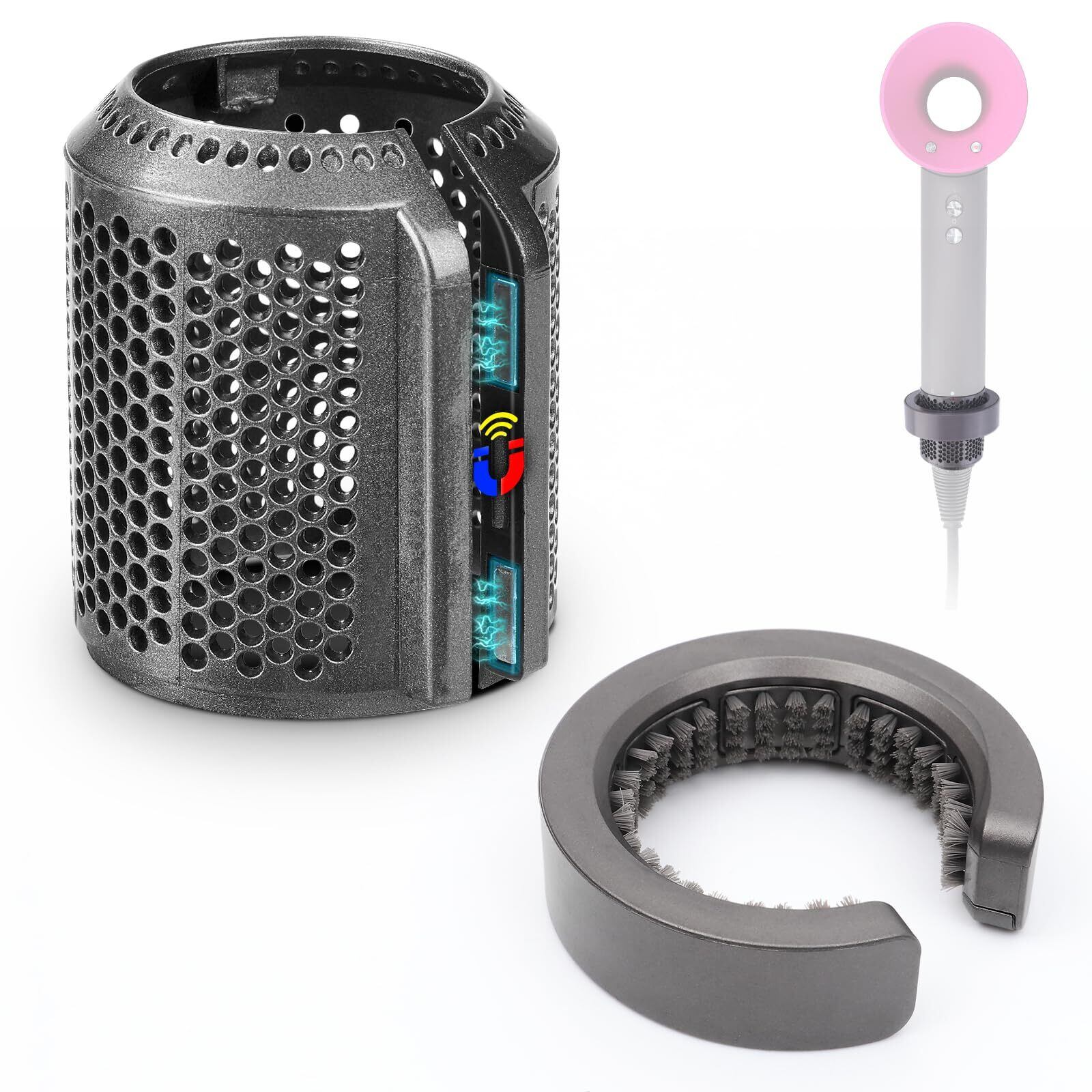 マグネット式ヘアードライヤーフィルター交換用ダイソンスーパーソニックHD01 HD03 HD08 HD15 ヘアードライヤーアタッチメント、ブラシ付きヘアードライヤーアウターフィルタースペアパーツ (メタリックグレー)