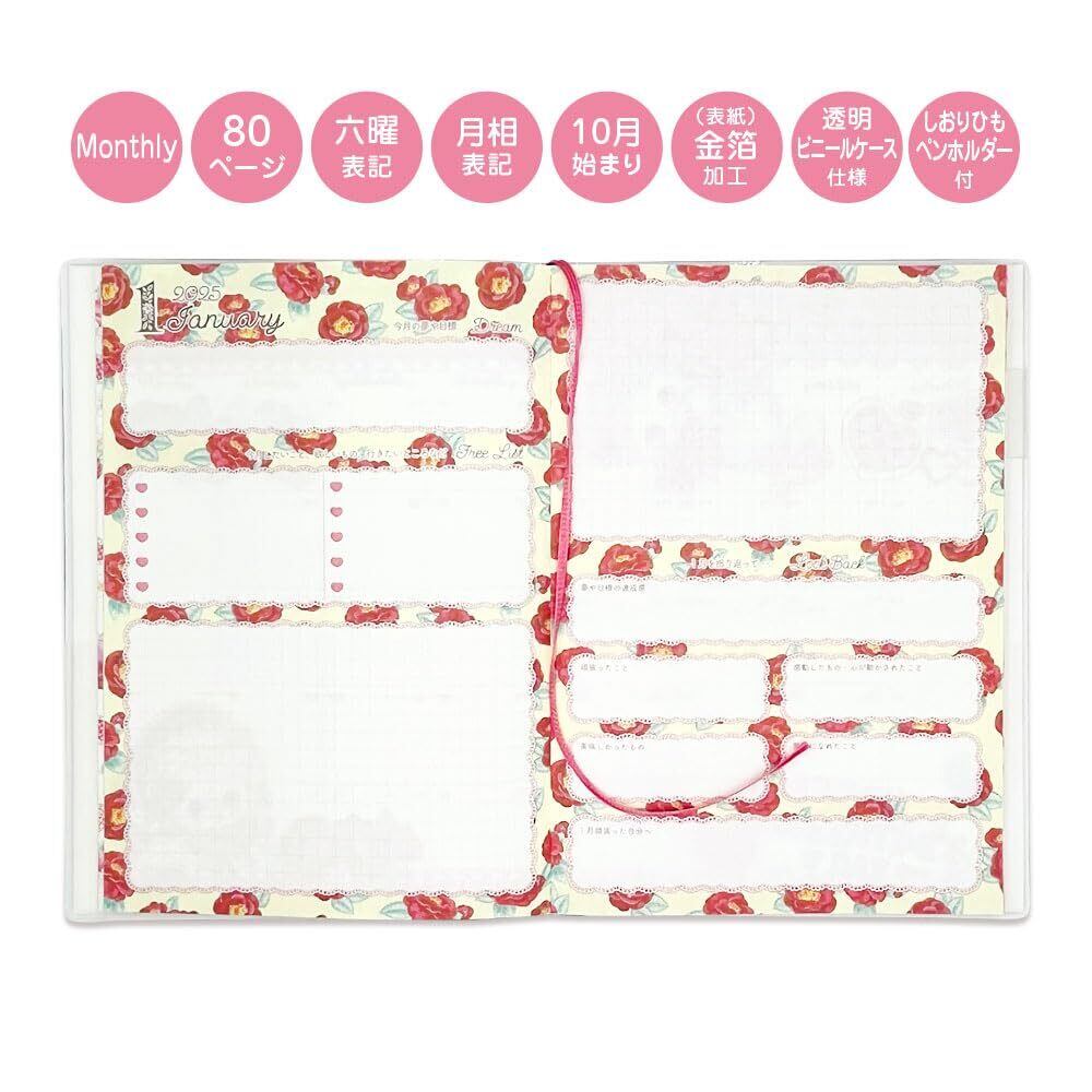 【仕様】紙/表紙に透明ビニールケース仕様 月間 月曜始まり 六曜月相表記 表紙金箔加工
