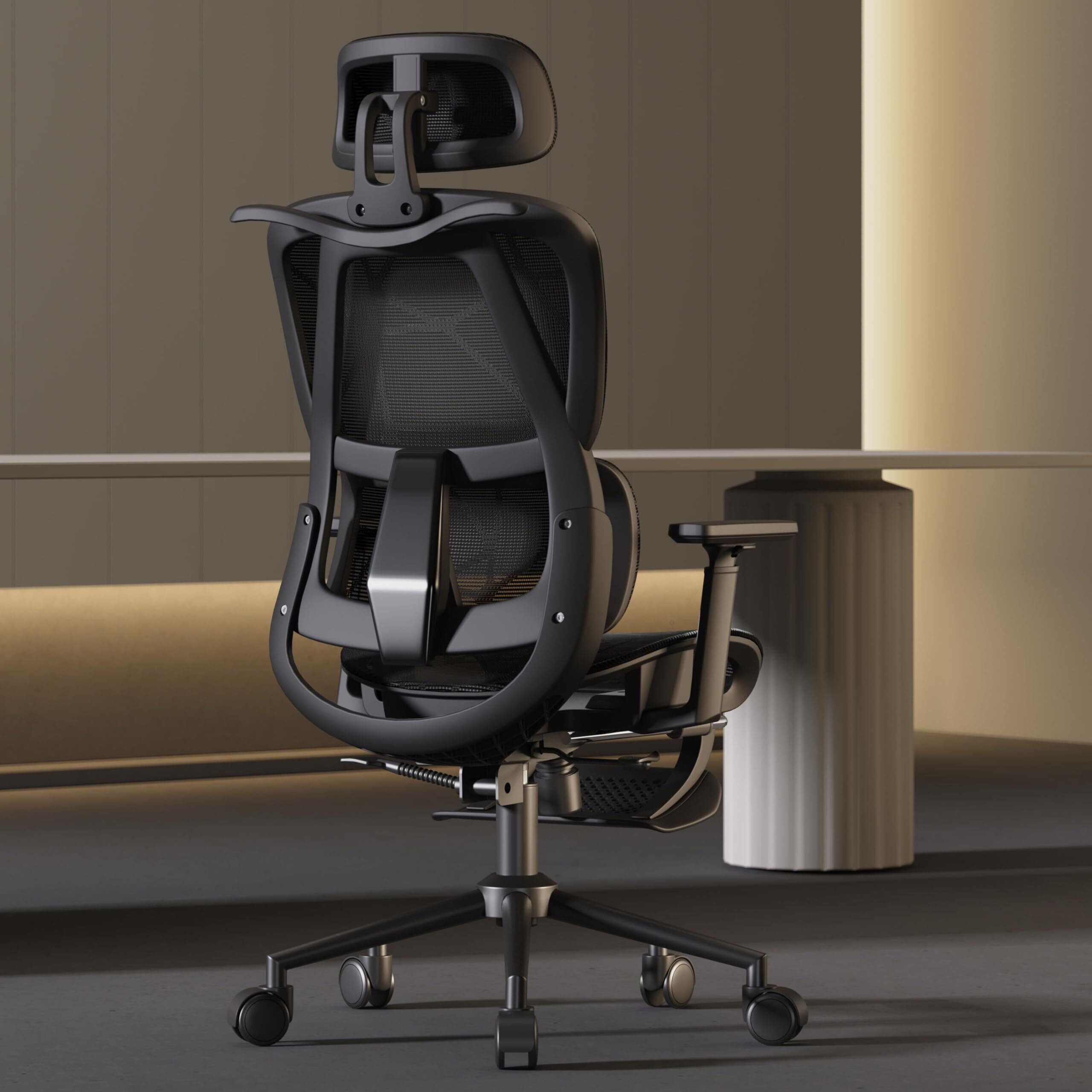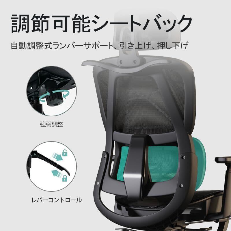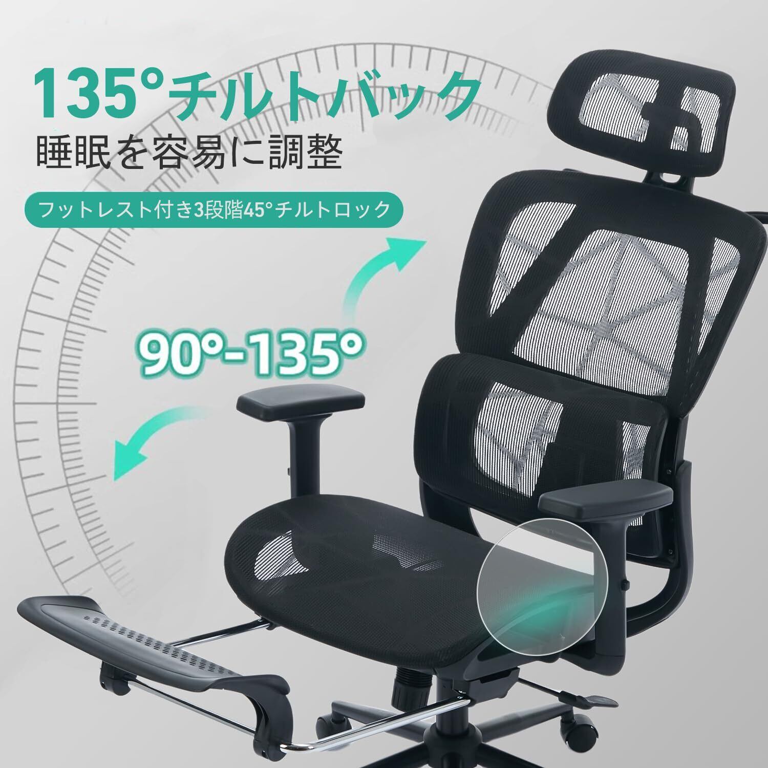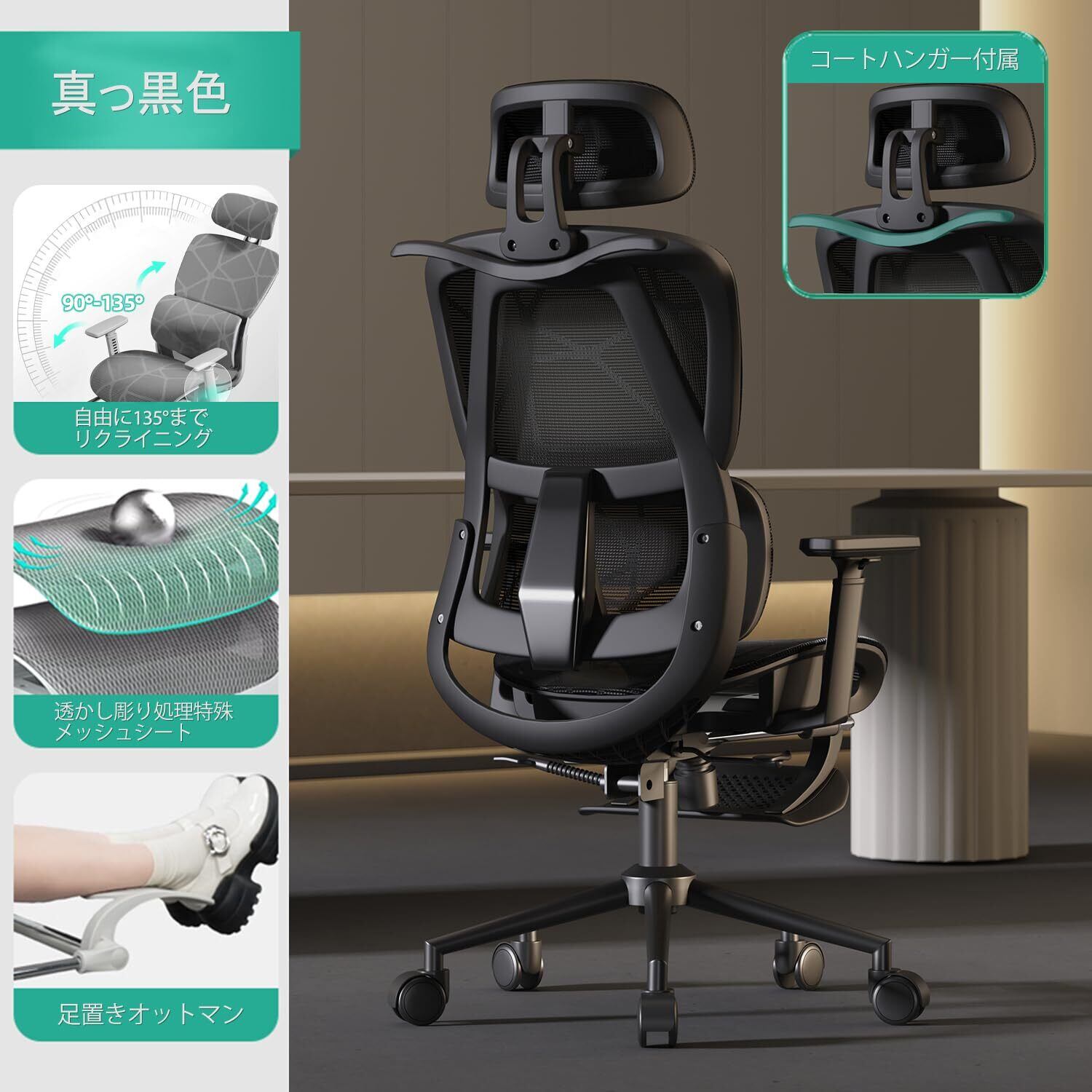 【多機能・高級感椅子】本椅子は上から3Dヘッドレスト装備して余分な頚支持問題を完璧に解決します。全身特製メッシュ素材で落ちる問題と通気性の問題を解決します。さらに一体化のオットマンと145度リクライニング機能は十分な休憩体験を満たします。5cmの座り奥行調整と10cmの高さ上下調節できて、ほとんどの人の身長に対応できます。