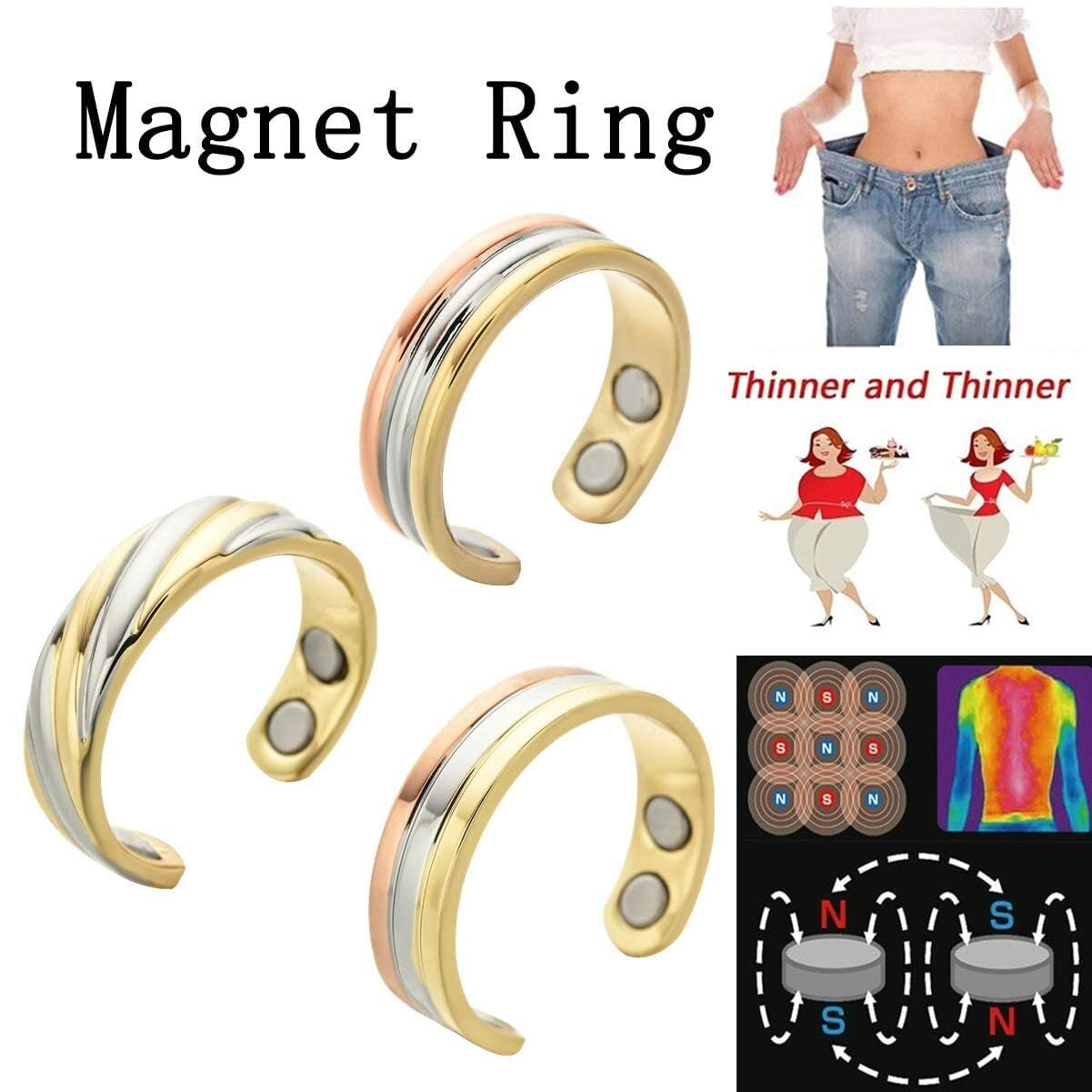 【商品概要】マグネット搭載ダイエットリング(4個のマグネット付き) このリングは、ネオジウムマグネットを4個搭載しており、快適な装着感があります。 【サイズ調整機能】指輪には便利な切込みがあり、ご自身の指のサイズに合わせて調整が可能です。 【スタイリッシュなデザイン】洗練されたデザインで、日常のファッションアクセサリーとしても最適です。