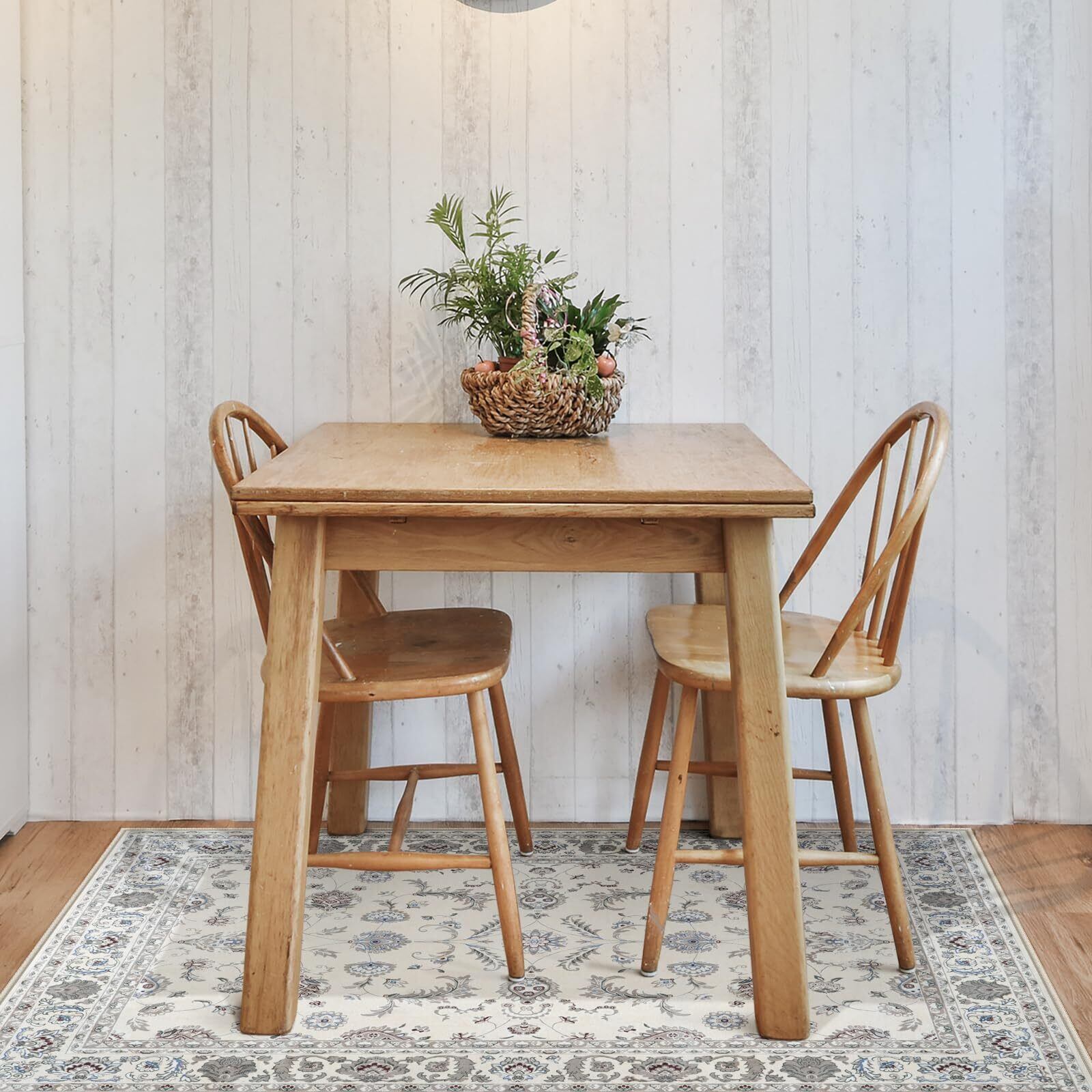 HAOCOO ラグ 洗える カーペット ペルシャ風 90х150cm おしゃれ 1畳 絨毯 耐磨耗性 滑り止め ホットカーペット対応 防音 ラグマット シェニール オールシーズン適用 抗菌防臭 軽量 花柄 オフホワイト