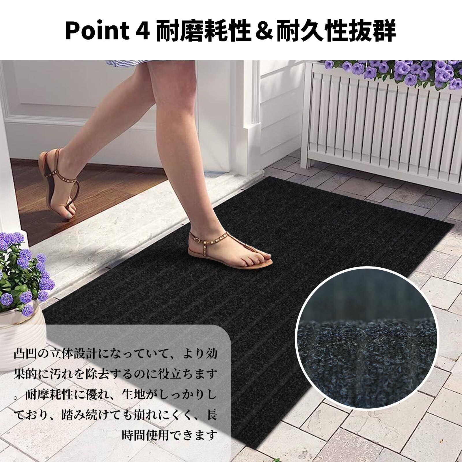 【耐磨性抜群&滑り止めマット】凸凹の立体設計になっていて、より効果的に汚れを除去するのに役立ちます。耐摩耗性に優れ、生地がしっかりしており、踏み続けても崩れにくく、長時間使用できます。裏面がゴム素材になっているので、滑り止め機能が付いています。子供とお年寄りがいるの家庭でも安心してお使いいただけます。