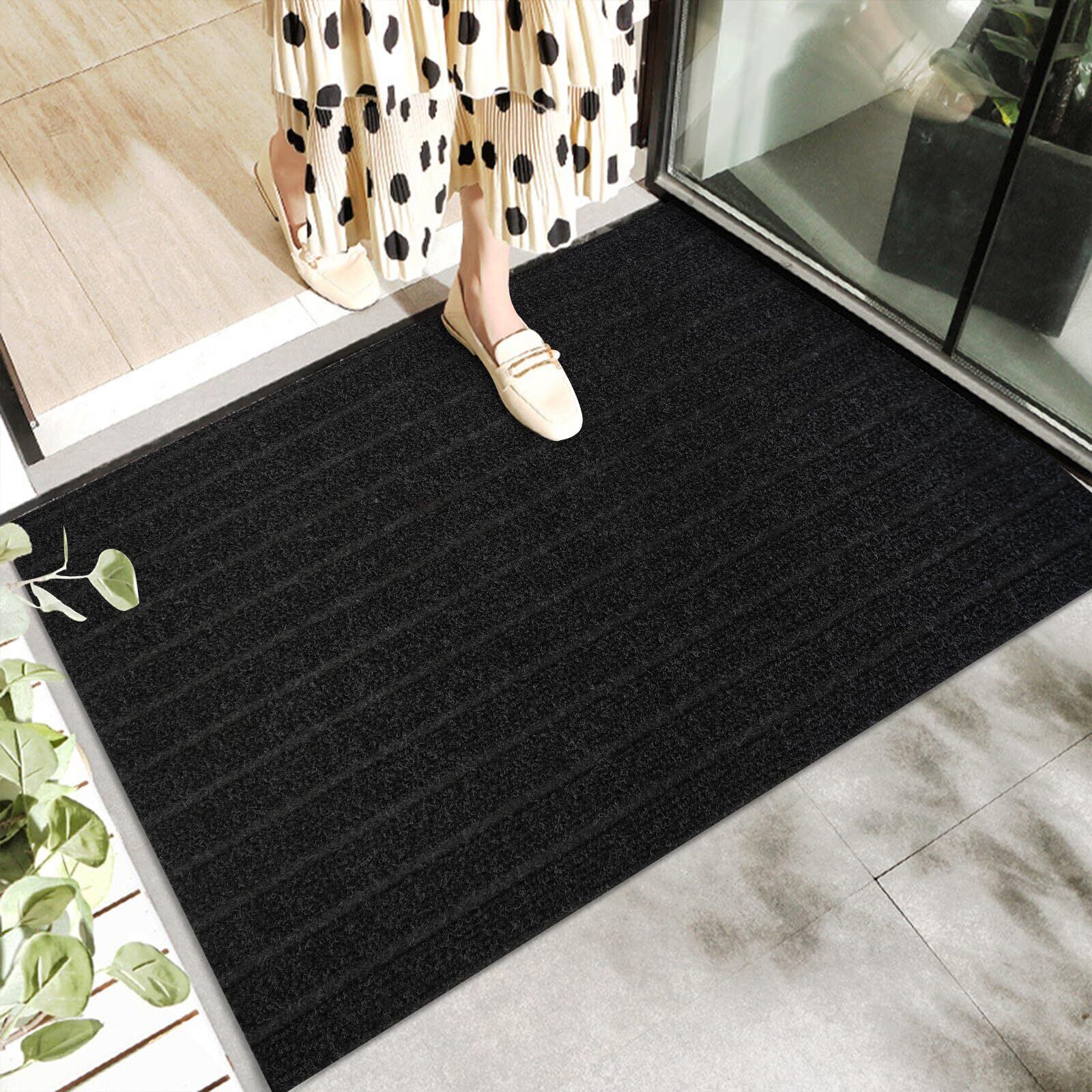 玄関マット 屋外 室内 滑り止め 泥落としマット 業務用 家庭用 速乾 吸水 耐磨耗性 玄関マット屋外用 玄関外マット 店舗用 オフィス お店 大判 (50×80cm, ブラック)