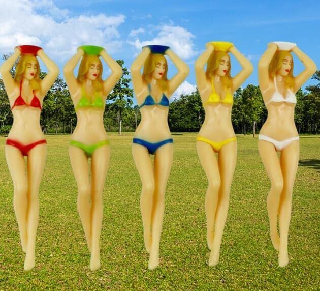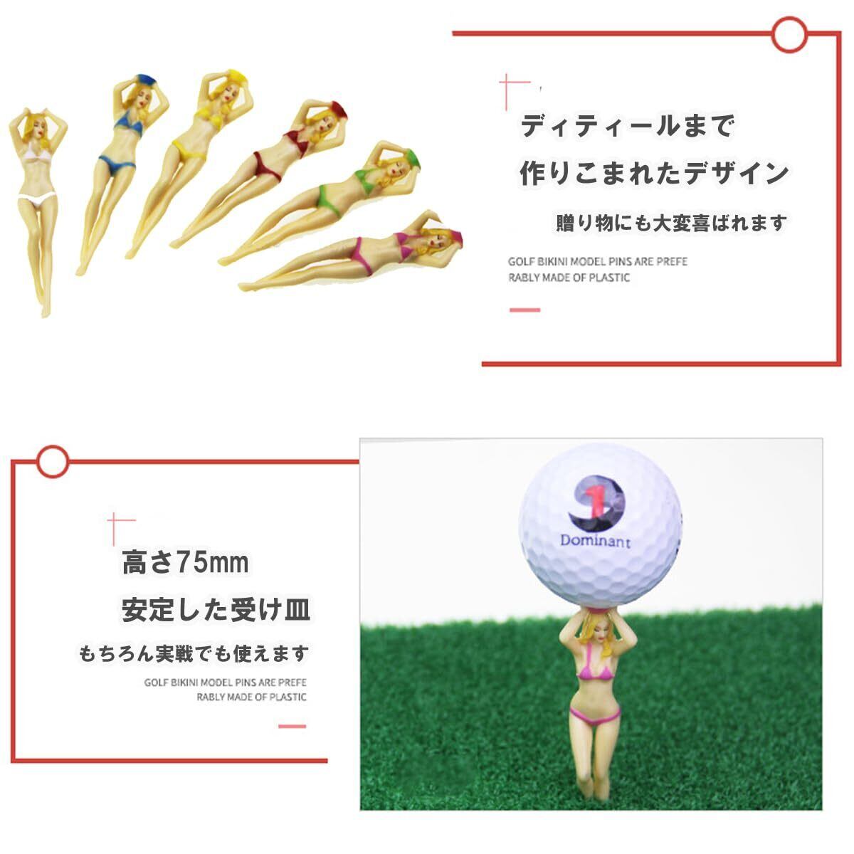 ■ティー【サイズ】75mm 【素材】プラスチック 【容量】6本(6色入り) ■インパクトシール【サイズ】160mm×110mm【容量】2枚 【包装】専用OPP袋 ビキニを着たセクシーな女性のティーです。 練習に最適なインパクトシール2枚を同梱しておりコンペの景品、ブービー賞、贈り物、プレゼントに最適な商品です。 実用的にも品質に問題なくコンペの始球式や友人同士のラウンド時にも楽しいひと時を演出します。大好評につき特価でのご提供を継続いたします!