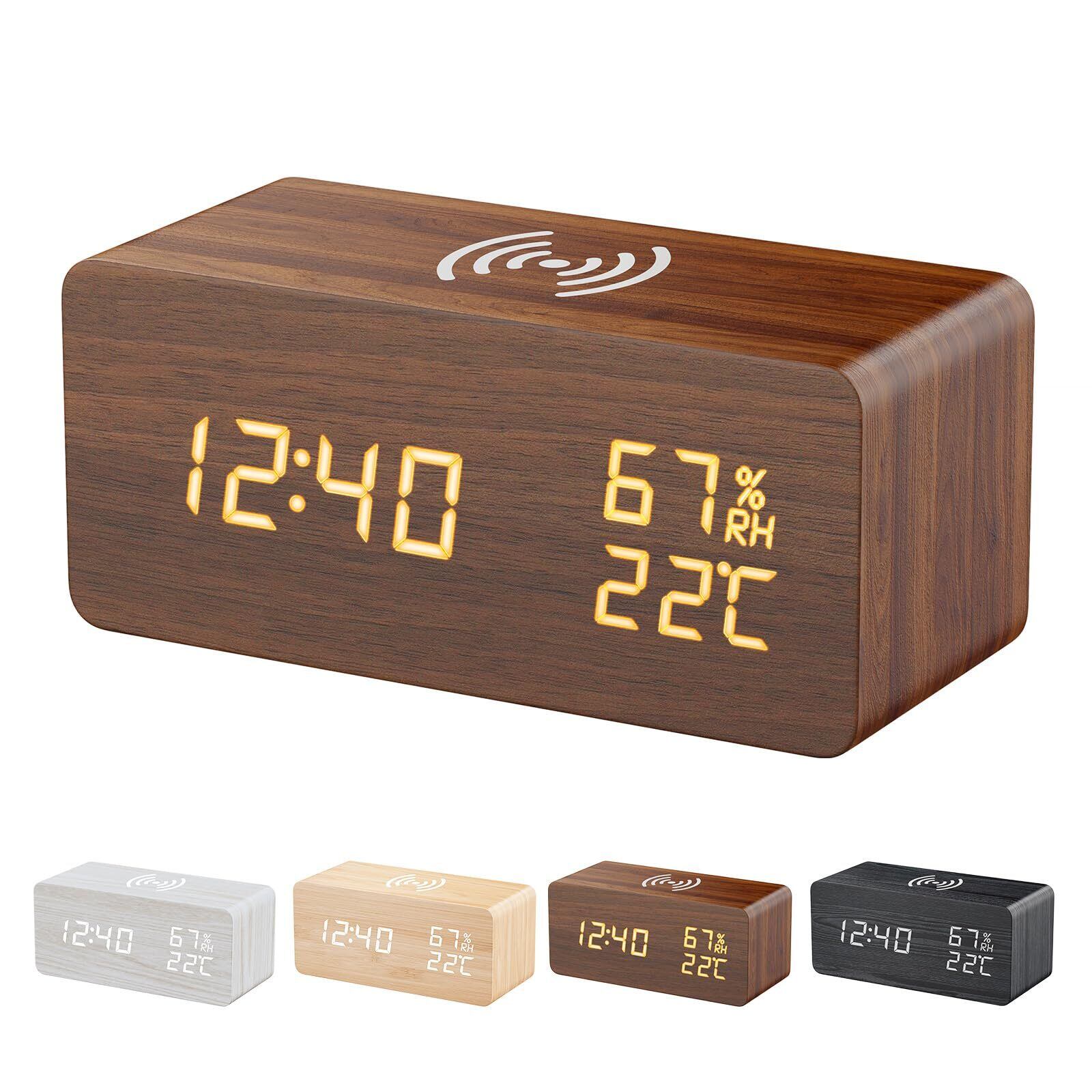 【多機能目覚まし時計】①LED数字表示で、昼でも夜でもはっきり見える;②音感センサー:60db以上の音に反応して点灯、静かになると約20秒後に消灯;③アラーム:アラームが三つまで設定可能;④3段階輝度調節:お好みで明るさ調節、省エネと共に目に優しい;⑤ダブルディスプレイ:12/24時間表示、時刻/カレンダー/温度表示/摂氏表示と華氏表示切替;湿度(±3%RH) 温度(±1℃);⑥設定記憶:電源が絶たれても、記憶機能で再設定不要;⑦二種の給電方法:USB給電と乾電池;⑧木目調のシンプルなデザインで、見た目はオシャレで、部屋のインテリアにとマッチします。