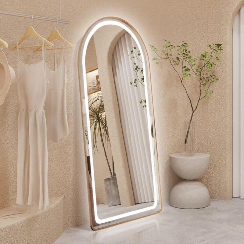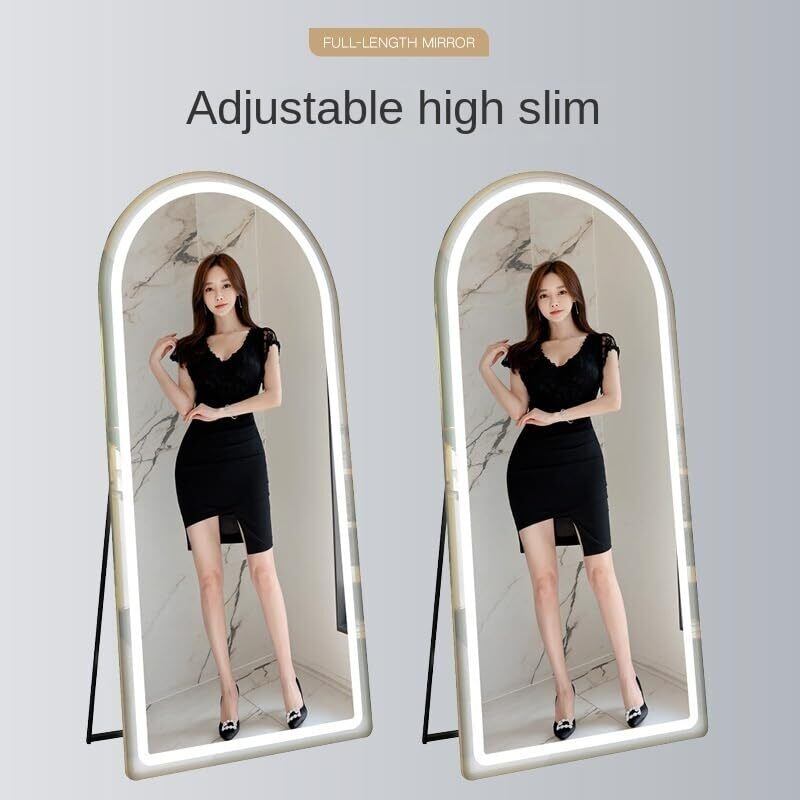 【おしゃれなLED 三色の光です 全身鏡】幅50×高さ160cm、高すぎず、低すぎない、足元まで全身をきちんと確認することができます。選べるブラック、ホワイト、ゴールド3色はシンプルでおしゃれ、アーチ型のデザインも美しくて、お部屋のインテリアと相性がいい、和室でも洋室でもよく馴染んでくれます。