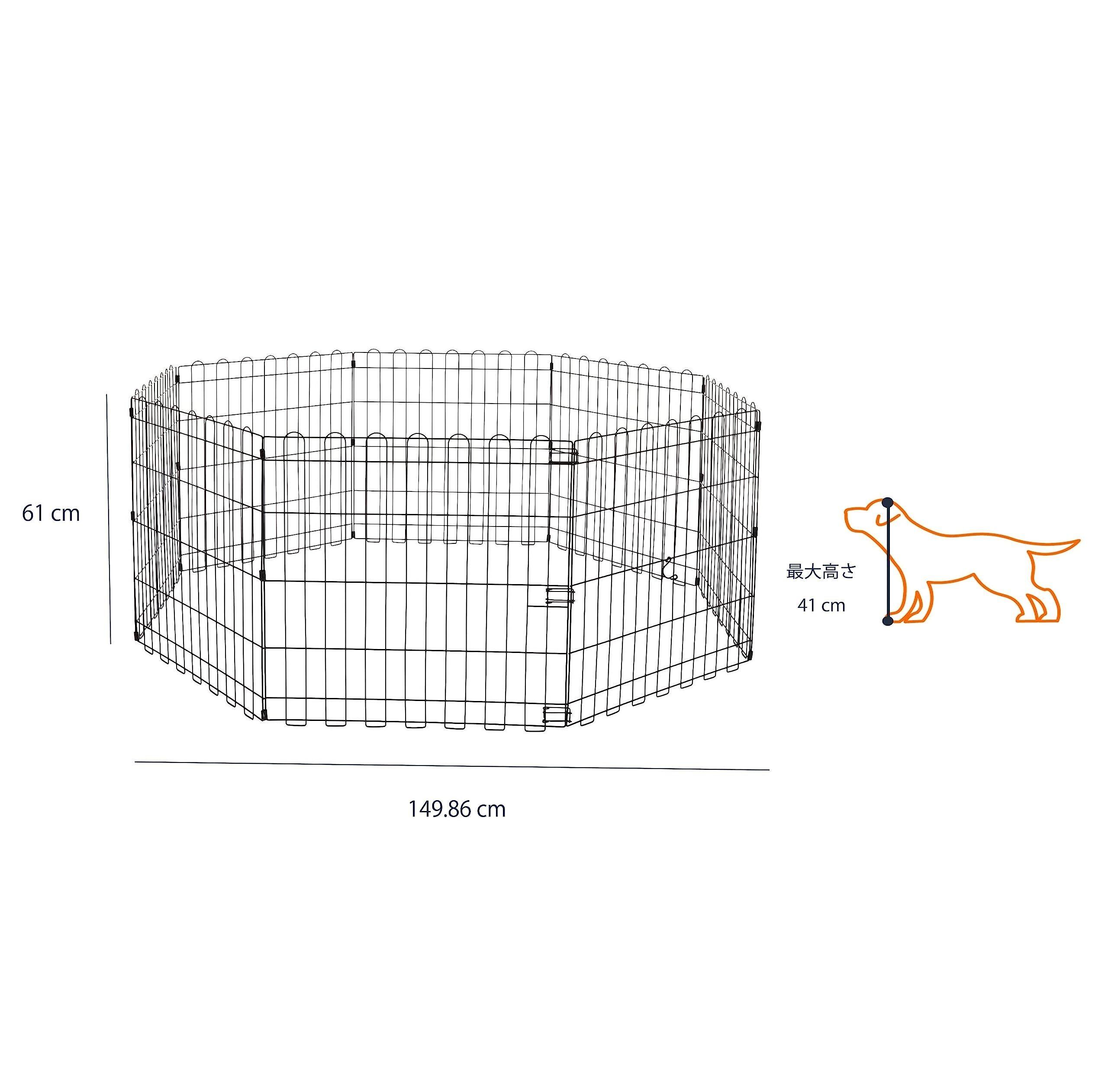 Amazonベーシック ペットサークル ペットフェンス 犬用 折りたたみ可能 金属製 パネル8枚 150 x 150 x 61cm 八角形 ブラック