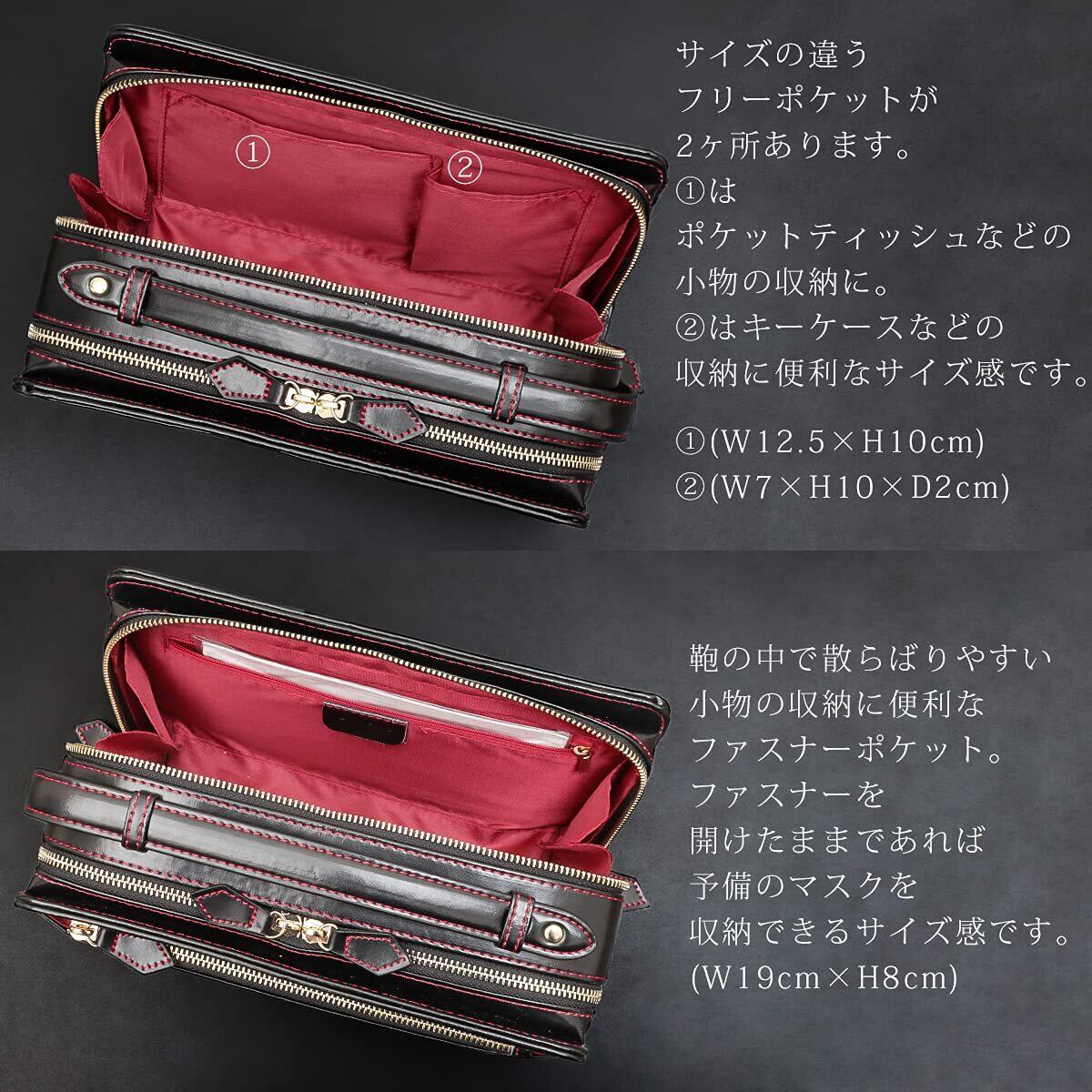 【2室構造で大容量な設計】ボックス型で収納スペースが2室に分かれており、それぞれにマチがあるので厚みのある長財布も楽々収納可能。さらに外側の前後に収納スペースが2ヶ所、内側にもポケットが3ヶ所ございますので、小物類も綺麗に整理して収納可能。