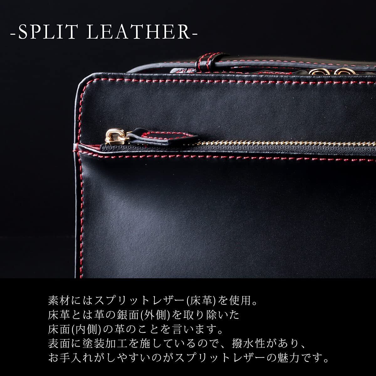 【スプリットレザーならではの機能性】素材にはスプリットレザー(馬床革)を使用。表面に塗装加工を施しているので、撥水性がありお手入れがしやすく、さらに高級感溢れる光沢感を表現。本革とは違った風合いを楽しめます。