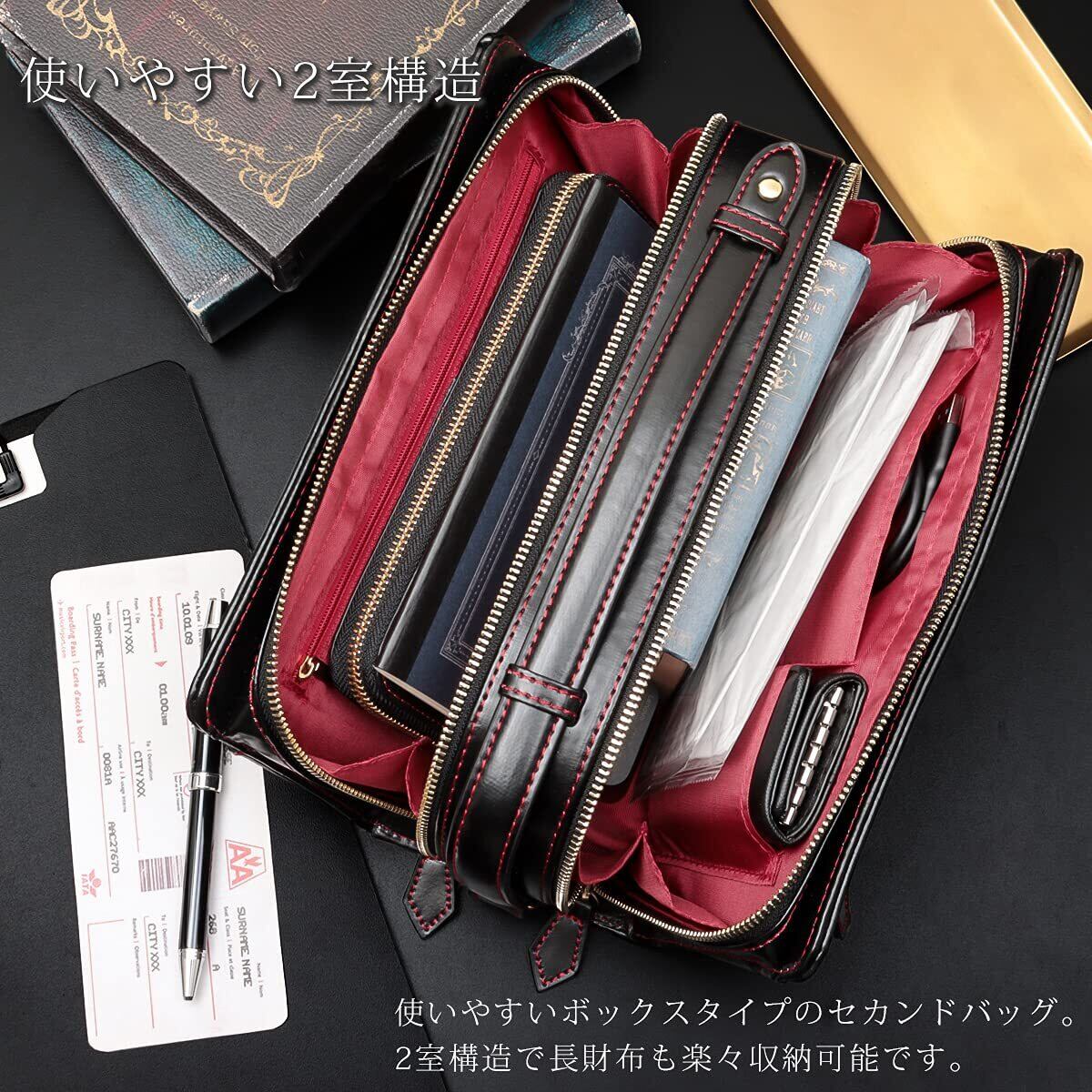 [ディアブロ] セカンドバッグ メンズ 大容量 革 ボックス型 ダブルファスナー デザインカラー クラッチバッグ 【KA-3111】