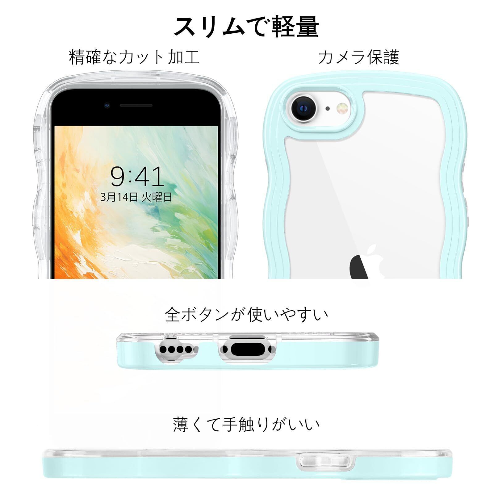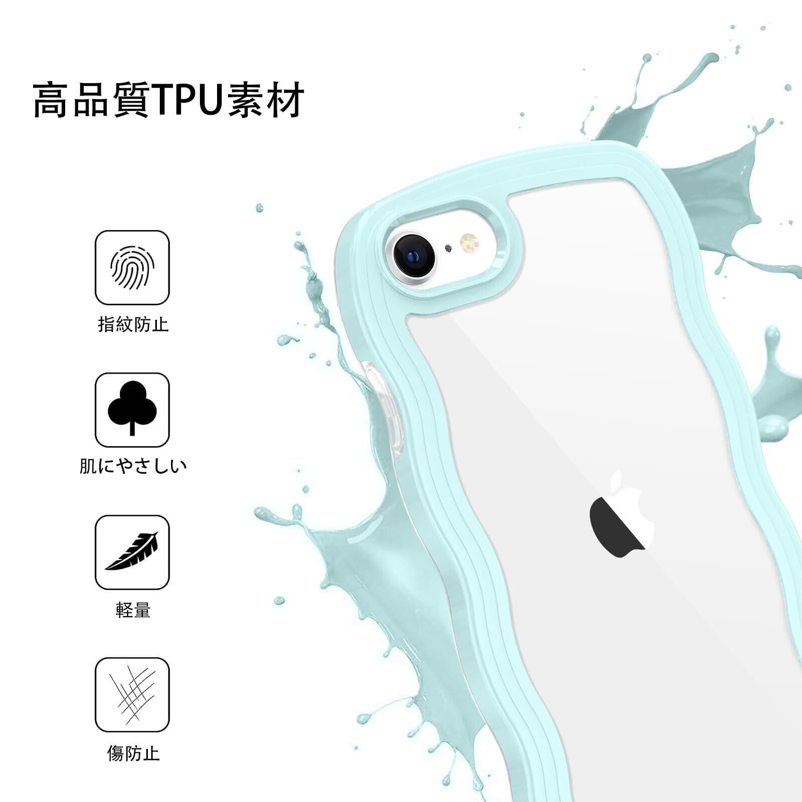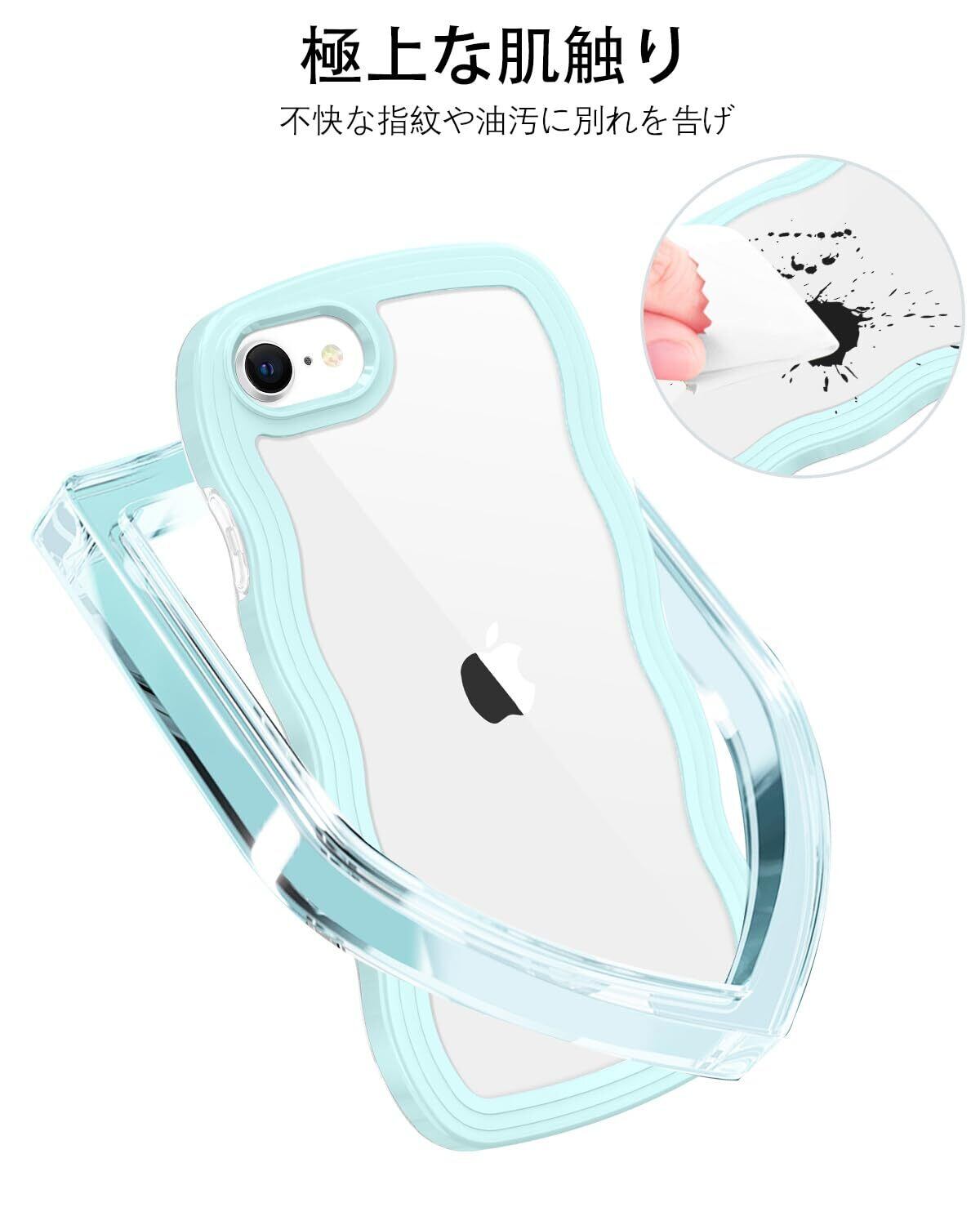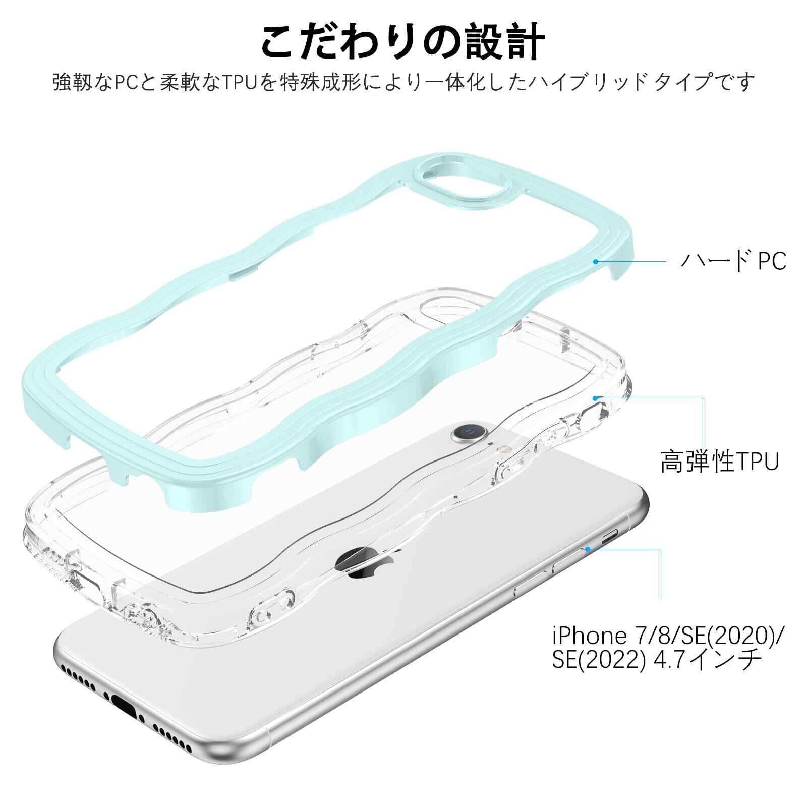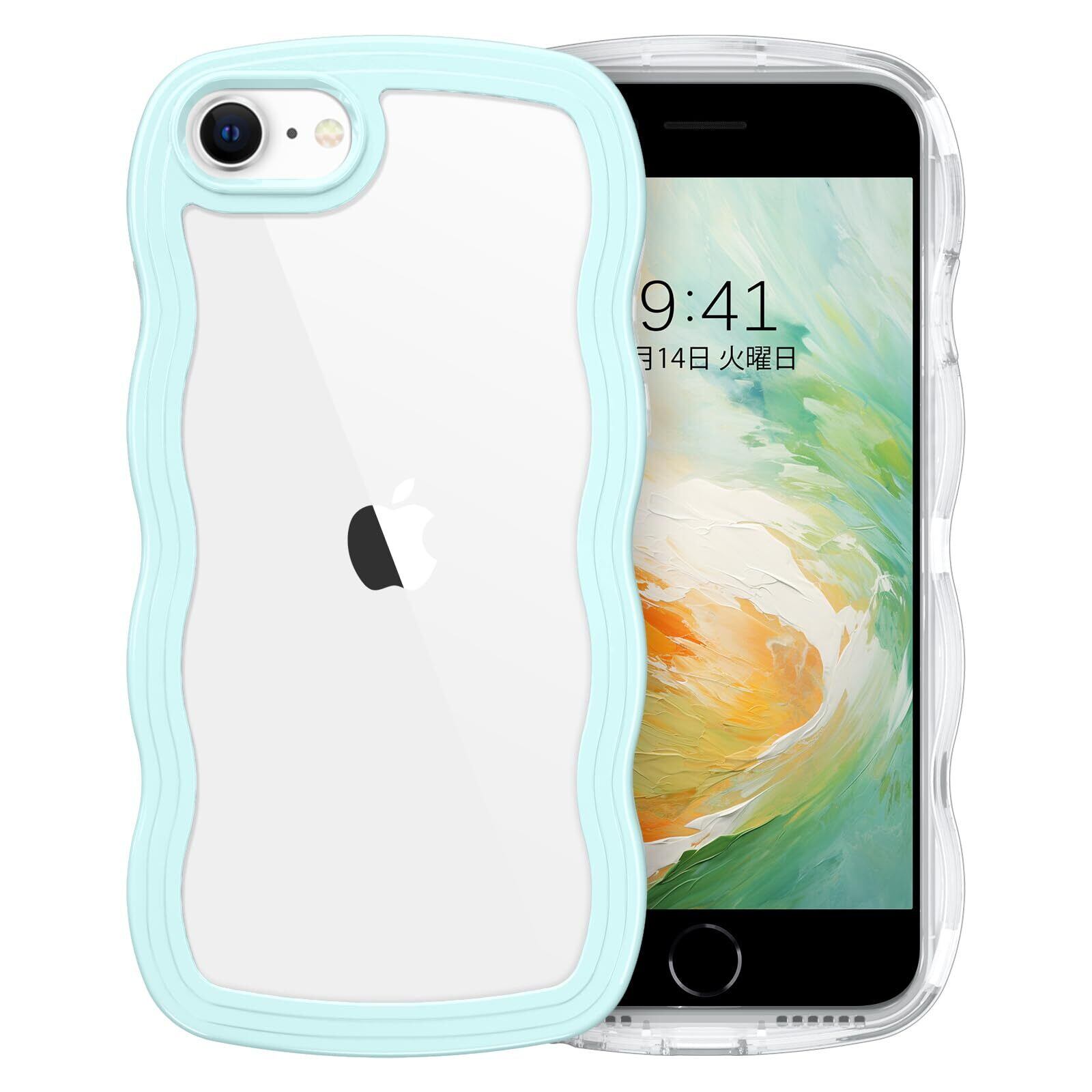 iPhone SE 第3世代 用/iPhone SE2 / iPhone8 / iPhone7 ケース クリア TPU+PC 韓国 可愛い ウェーブ ソフト 滑り止め 薄型 軽量 耐衝撃 おしゃれ スマホケース ストラップホール付き アイフォン SE3 SE2 8 7 ケース 4.7インチ ライトシアン