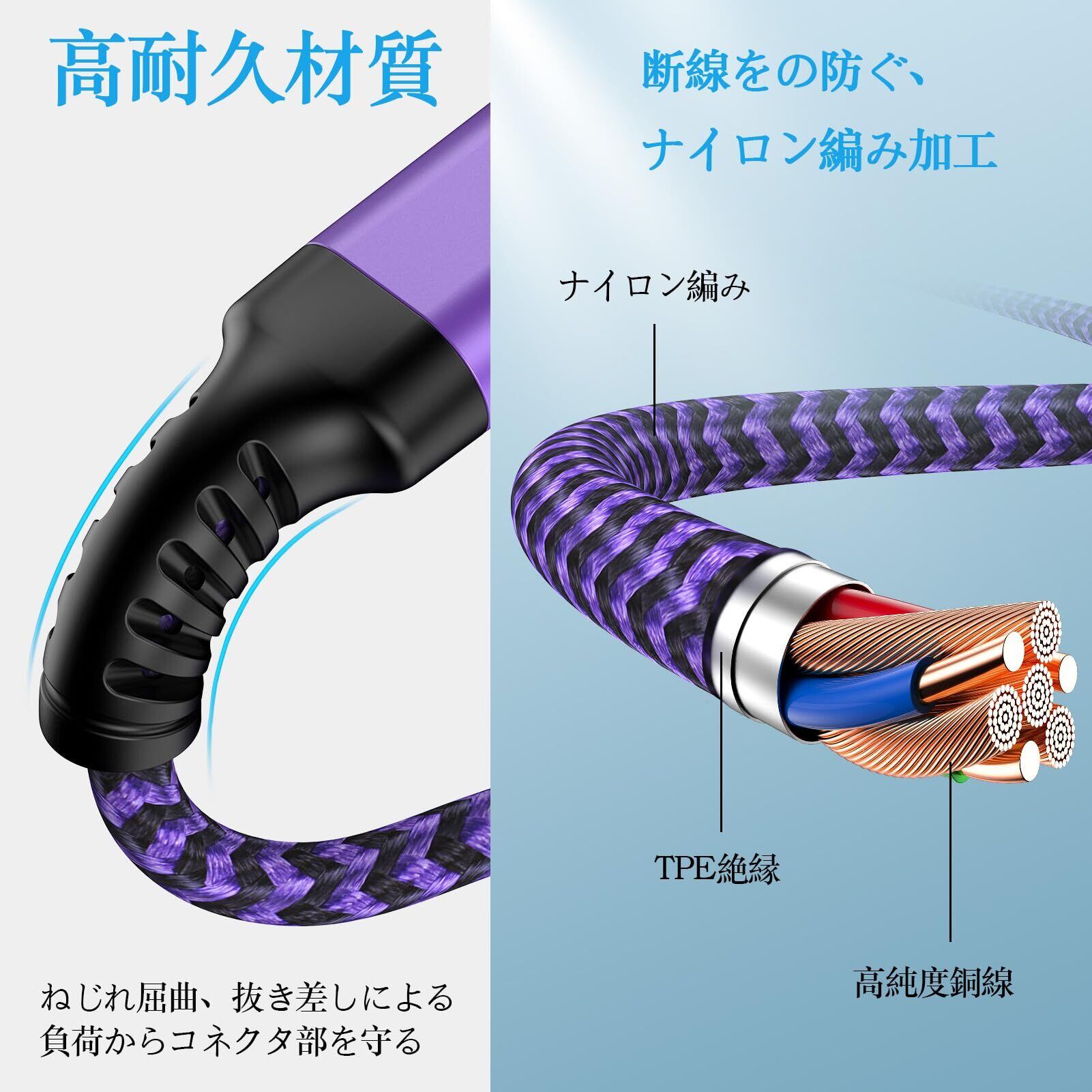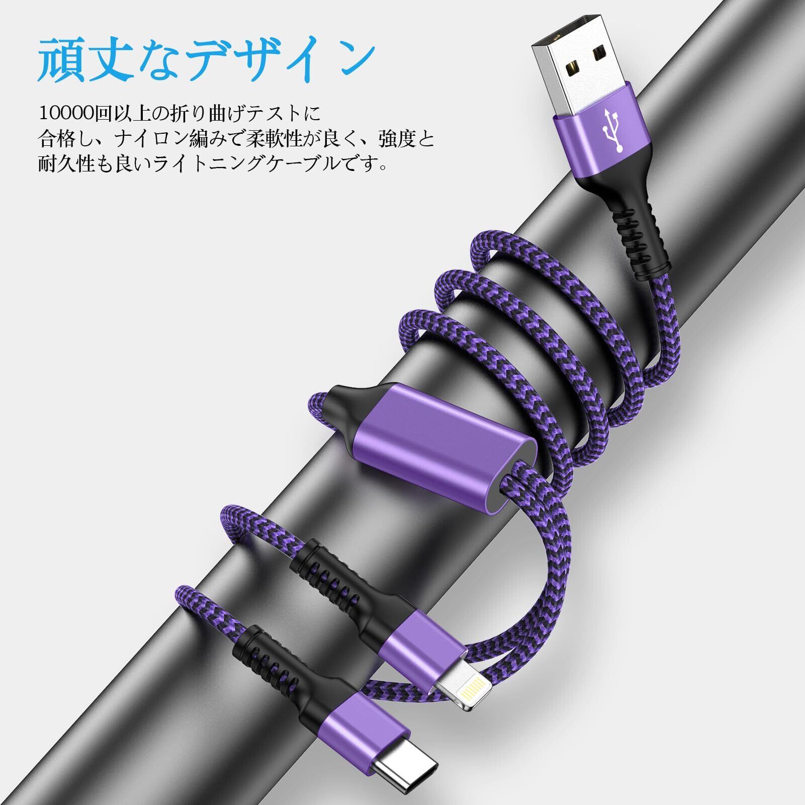 【頑丈な構造】2イン1 アイフォン 充電コードは優質ナイロン編み、一般的なケーブルより10倍以上の耐久性をもち、10000回以上の厳しい折り曲げテストもクリアしました。断線防止のため、アルミ合金製接続口を採用し、高耐久性で抜挿寿命性向上、安心して充電することができます。