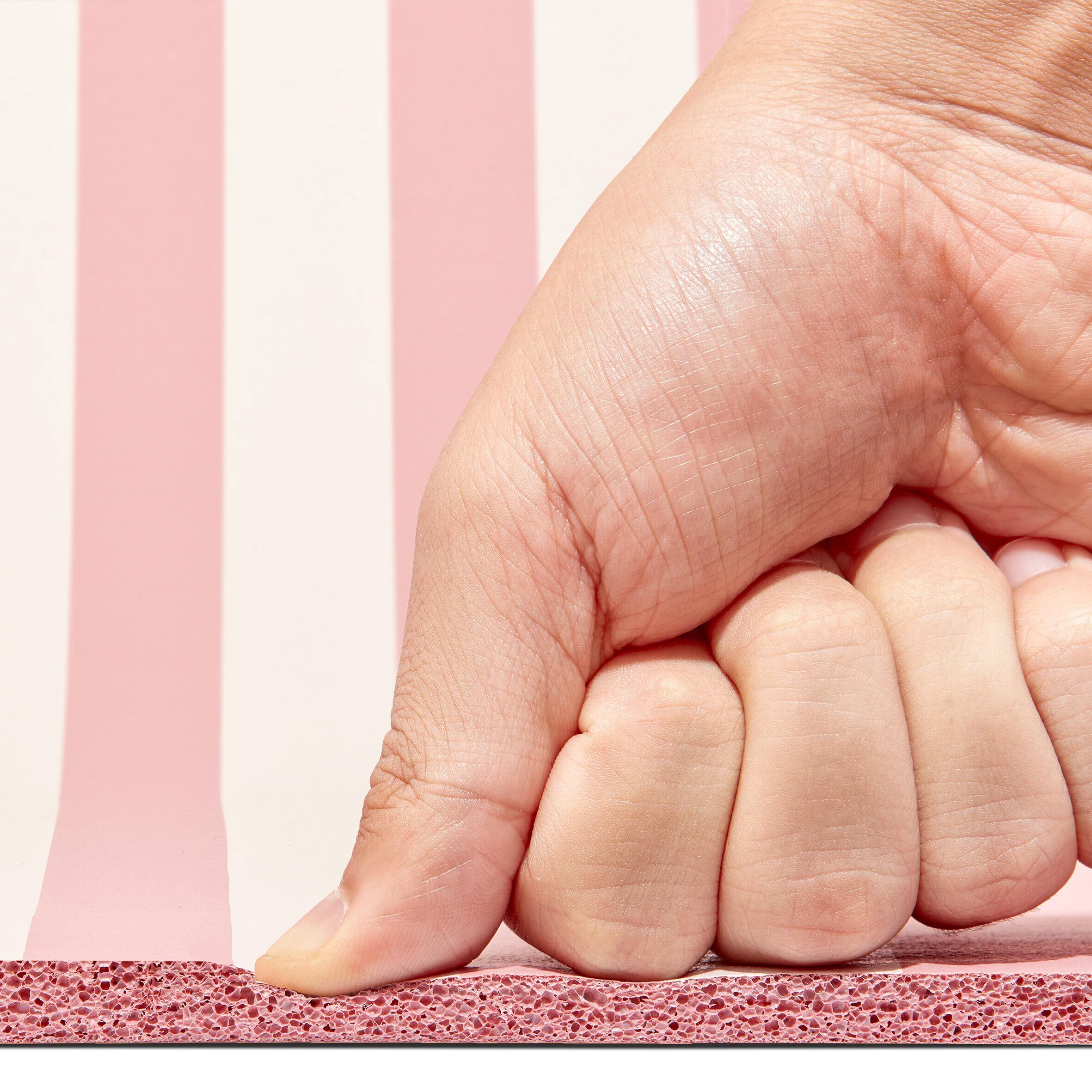 【特長】ストレッチやヨガにお使い下さい。柔らかい質感ながら耐久性があります。裏面は床への静止摩擦を高めるための波状(リブ状)ベースを施しています。