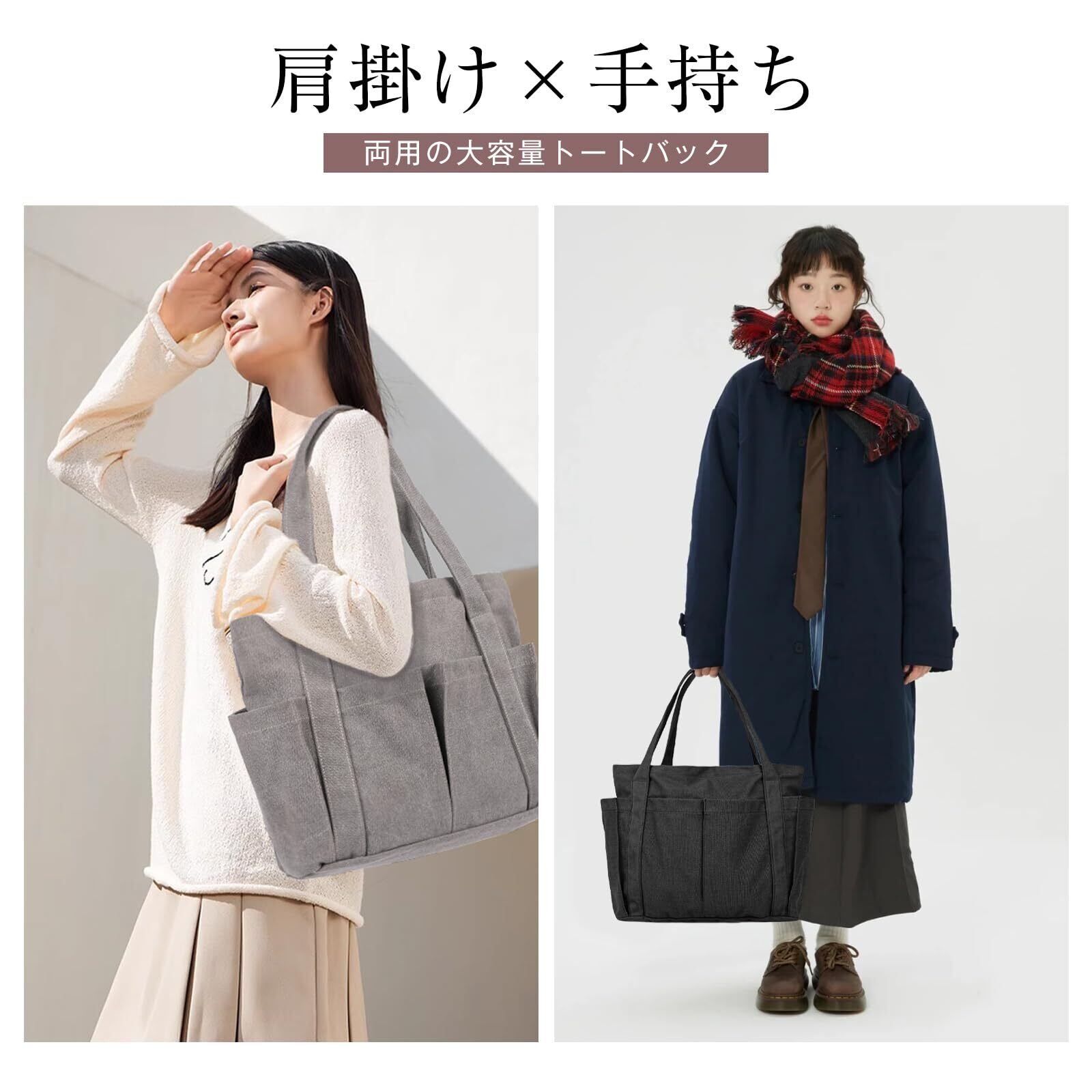 [imeetu] トートバッグ キャンバス 肩掛けバッグ レディース メンズ A4対応 通勤 通学 帆布 大容量 多機能 無地 (Ⅿサイズ)