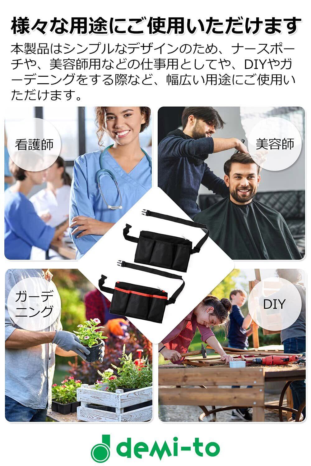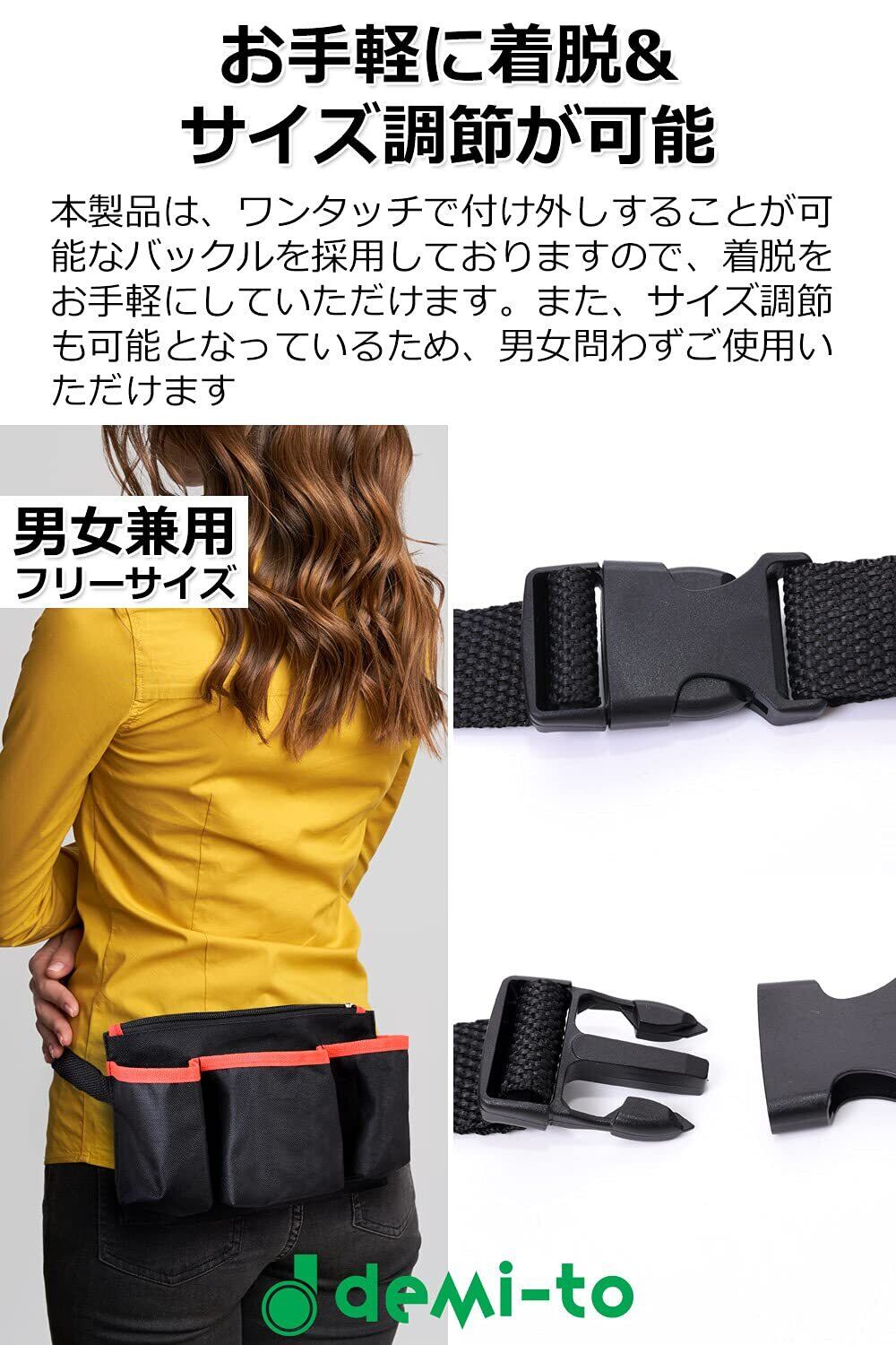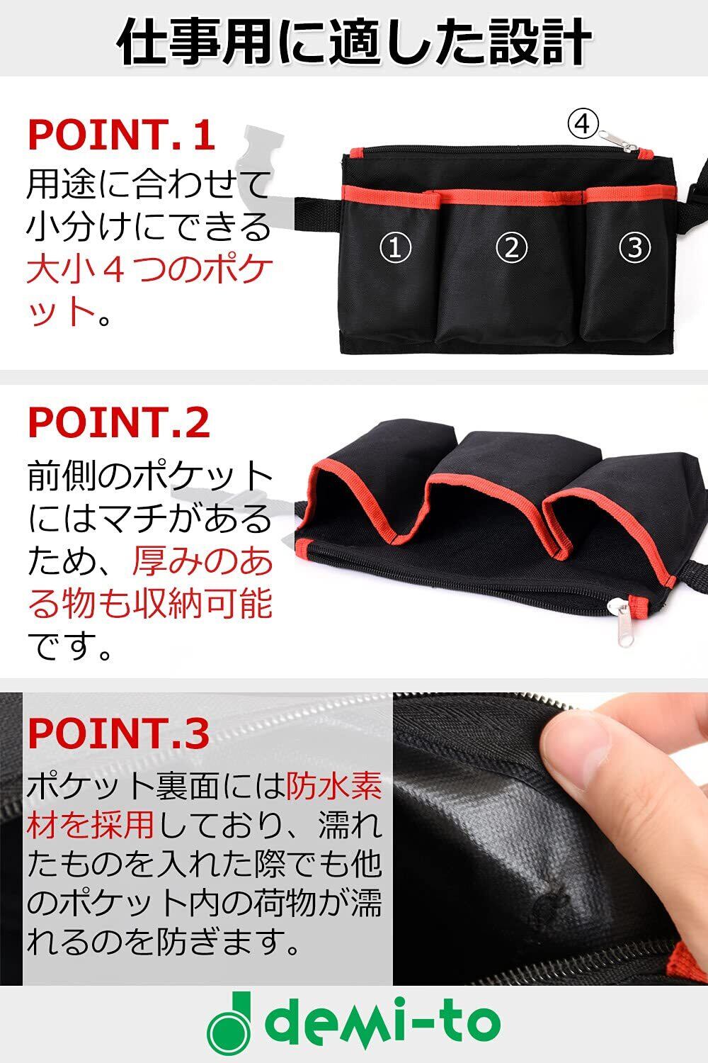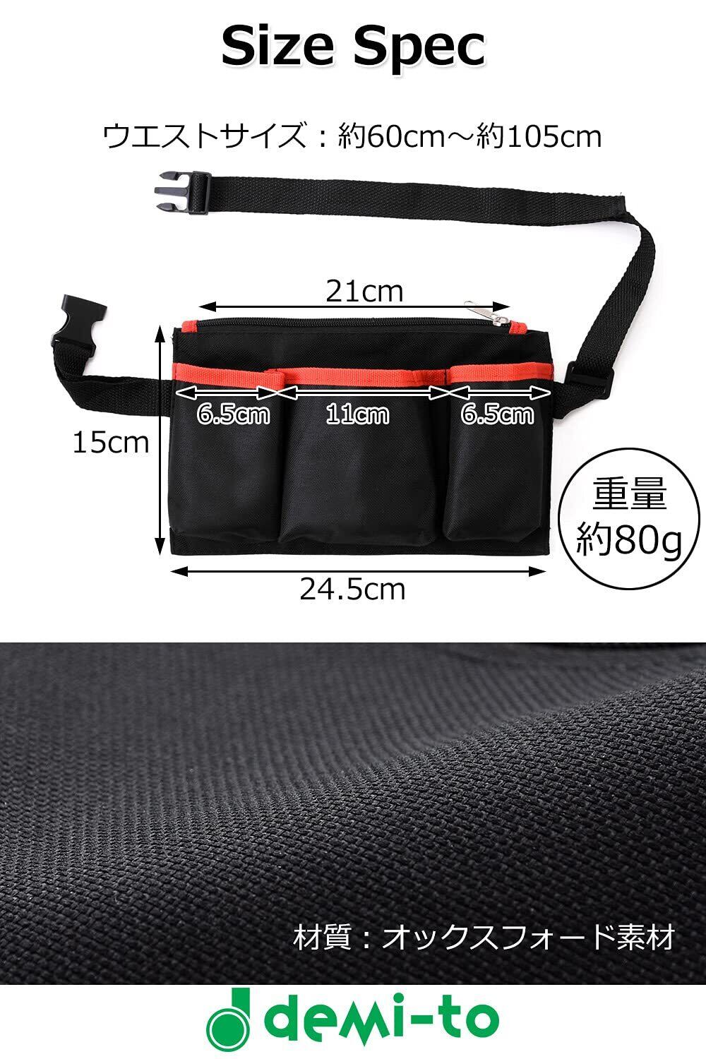 エプロンバッグ 仕事用 ナースポーチ (ブラックorレッド) 仕事用ウエストポーチ 「 看護師 美容師 ガーデニング 用に ウエストポーチ 【demi-to】