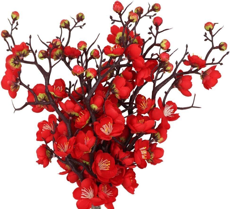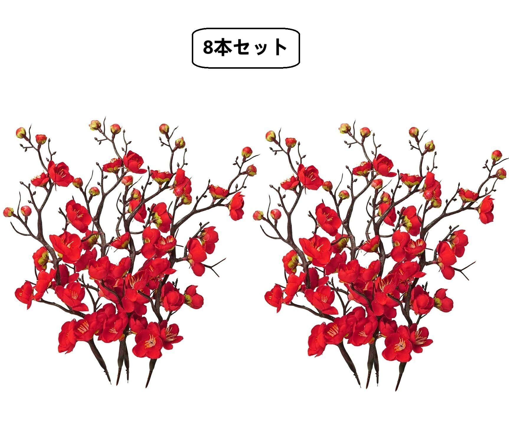 造花 紅梅 梅の花 8本セット 枯れない 人工花ブーケ レッド 新年 お正月飾り 春節 室内 フラワーアレンジメント インテリア 部屋飾り 造花芸術 フェイクフラワー