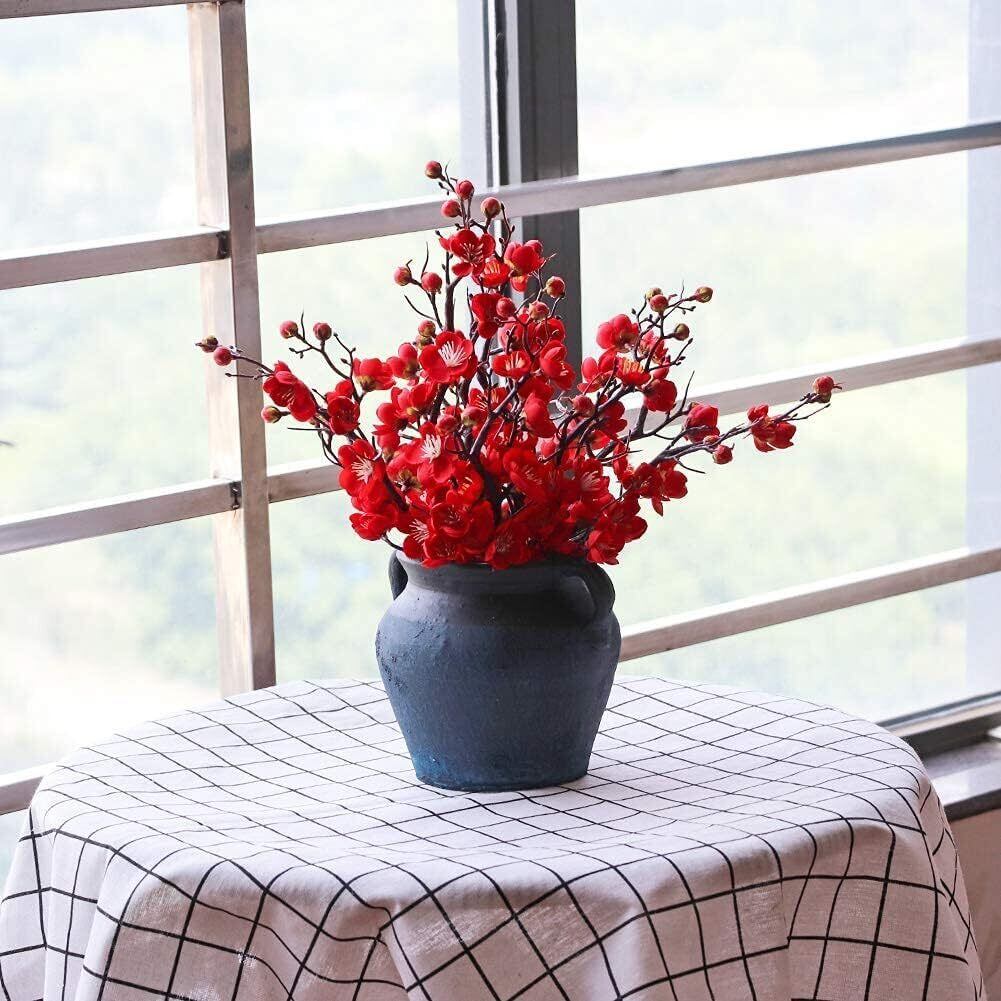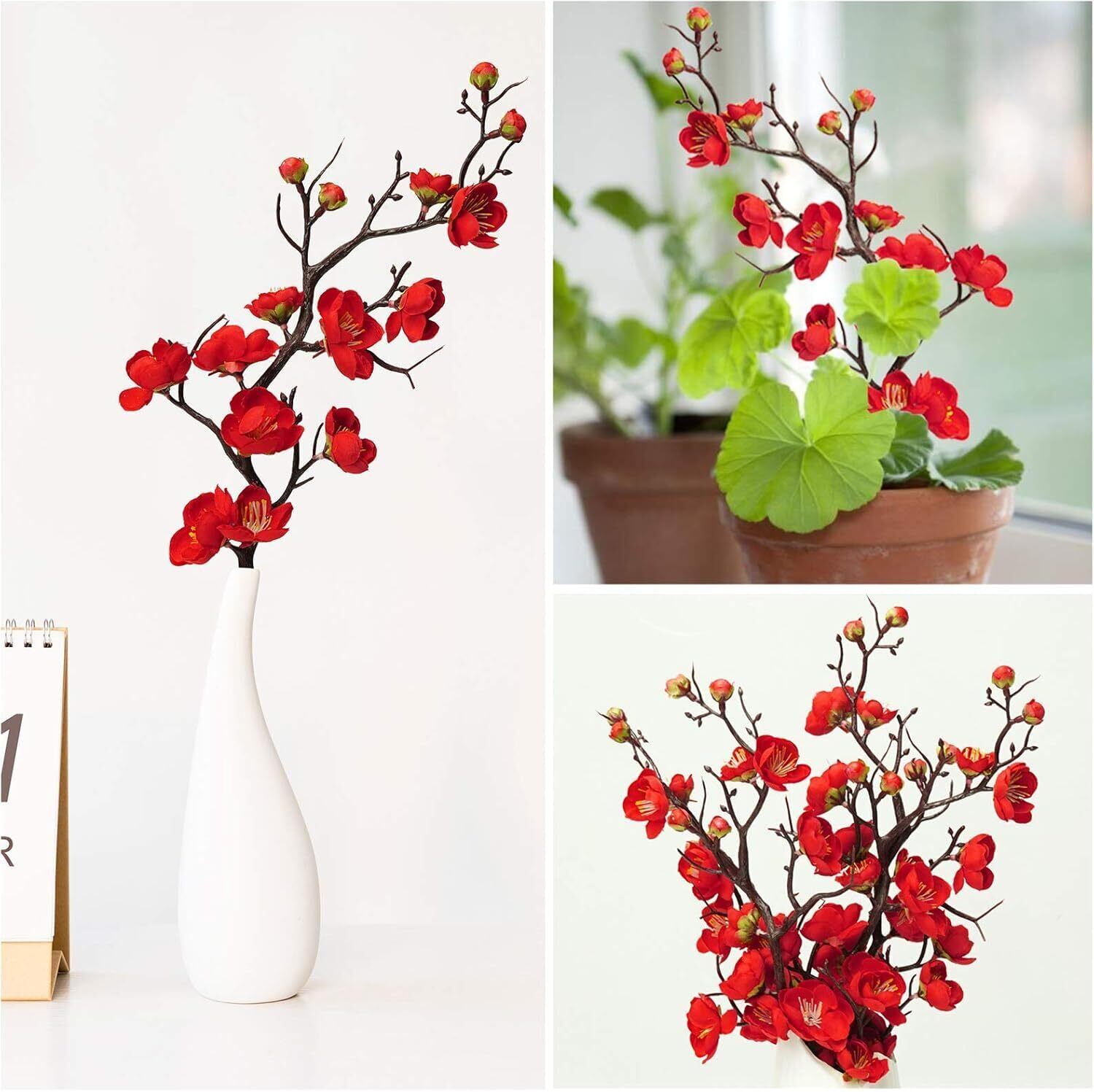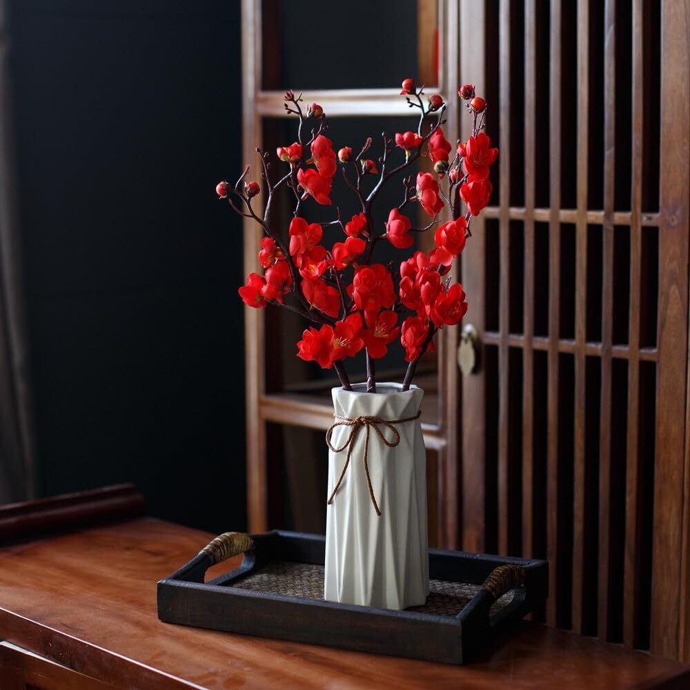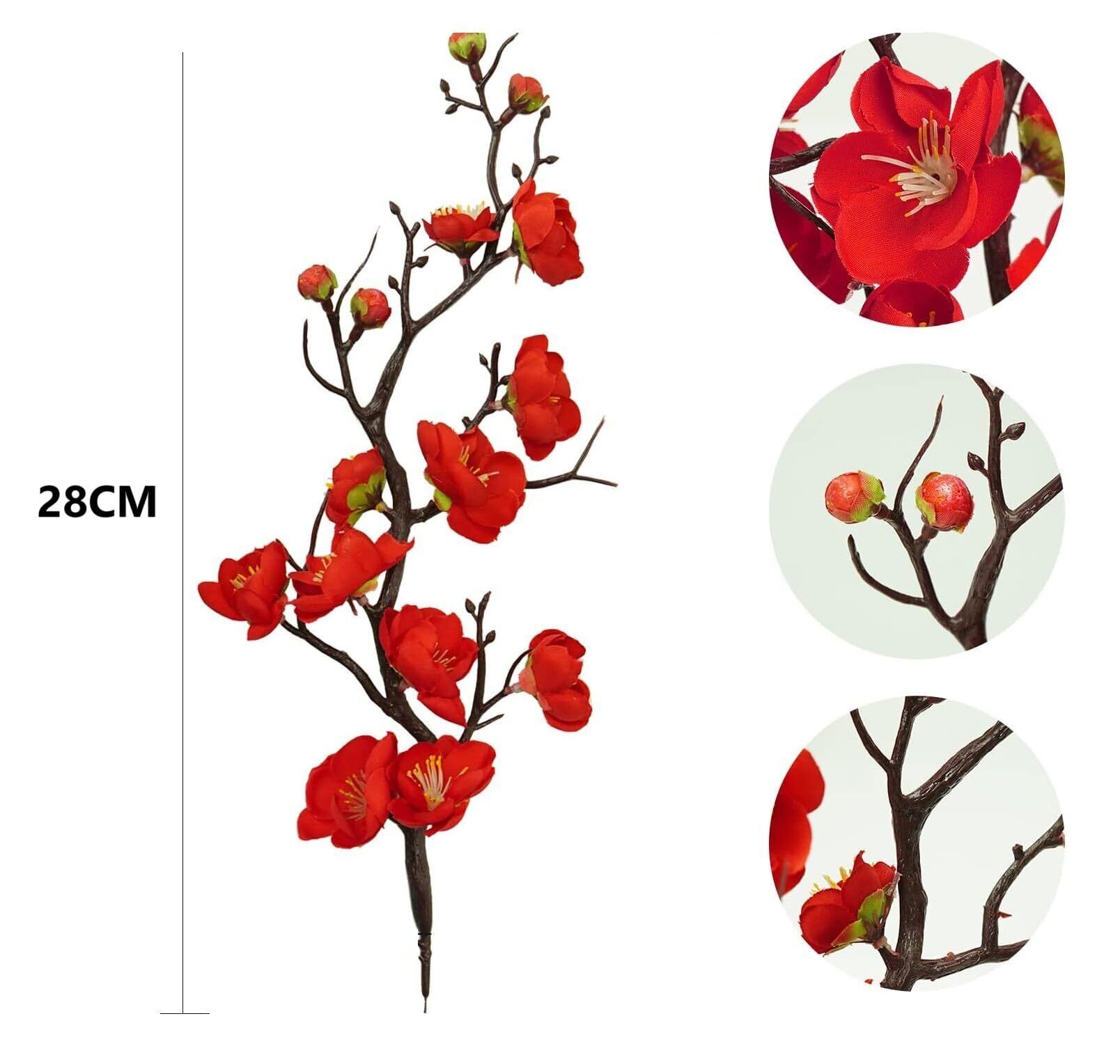 「優れた材質」:花茎はプラスチックで作られており、内側に鉄線が入っており、曲げることができます。花びらはシルク布で精工に作られており、リアルな質感が楽しめます。非常に価値のある紅梅の造花です。