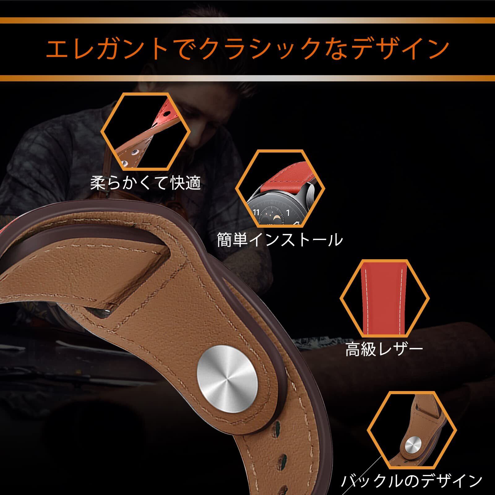 LuFiYa 22mmレザーストラップは、柔らかく、軽量で耐久性があり、滑りにくく、肌に優しく、臭いがなく、手首にとても馴染みやすいのが特徴です。