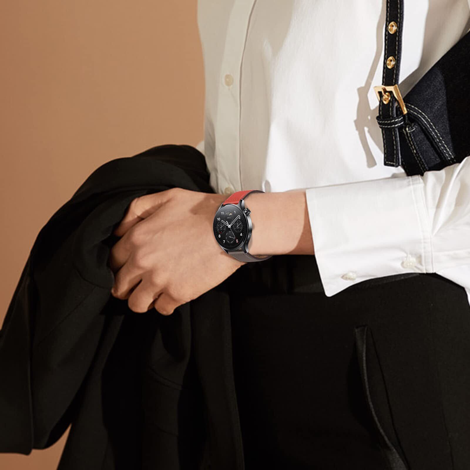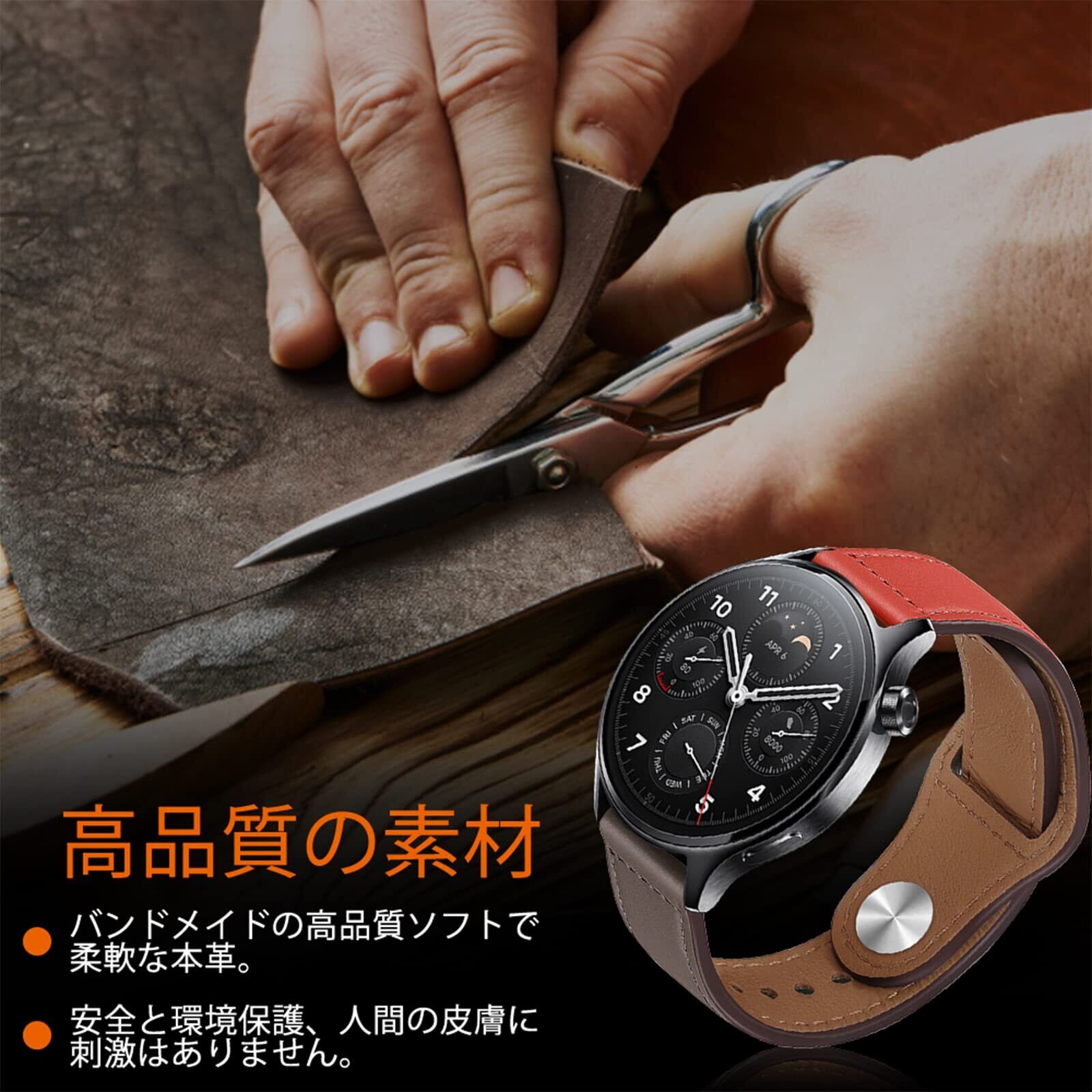 22mm レザーバンド Xiaomi Redmi Watch 5 Active/Redmi Watch 5 Lite/Watch 2/Watch S3/Watch S1 Pro/Watch S2 対応 本革バンド 交換ベルト 腕時計バンド ビジネス風 柔軟 男女通用 ストラップ Garmin Venu 3/Forerunner 265/255 用 時計バンド(レンガの赤とグレー)