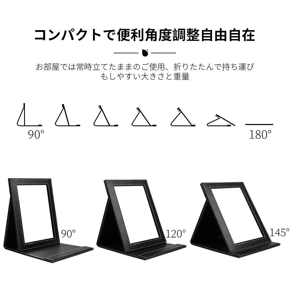 【角度調整自由自在】20.5*15.2*1.5cm。角度調整は90°も可能です。滑り止めになって鏡の部分を固定しますので、お好みの位置で固定できます。