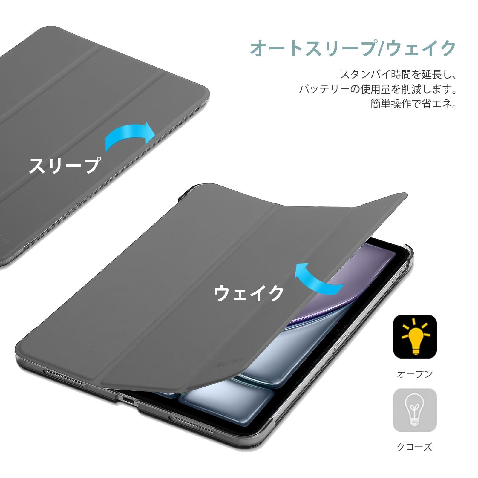 ProCase iPad Air 11インチ ケース M3 (2025) / M2 (2024) / iPad Air 第5世代 / 第4世代 軽量 スタンド 三つ折り フォリオ保護ケース 半透明バックカバー Apple Pencil 2対応 対応端末:iPad air 11インチ M3 (2025)、M2 (2024)、iPad Air5 2022、Air4 2020 - グレー