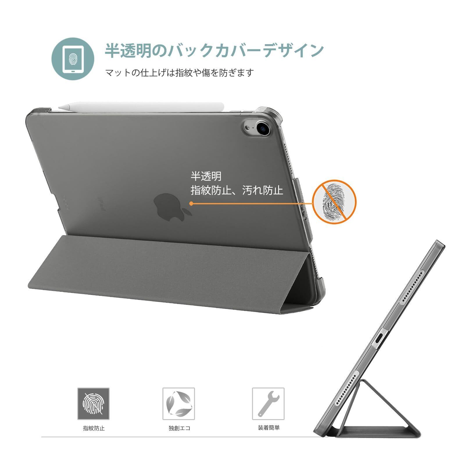 半透明のつや消し背面カバーは、耐衝撃で指紋や傷から保護しながら、iPad本来の美しさをそのまま活かせます。