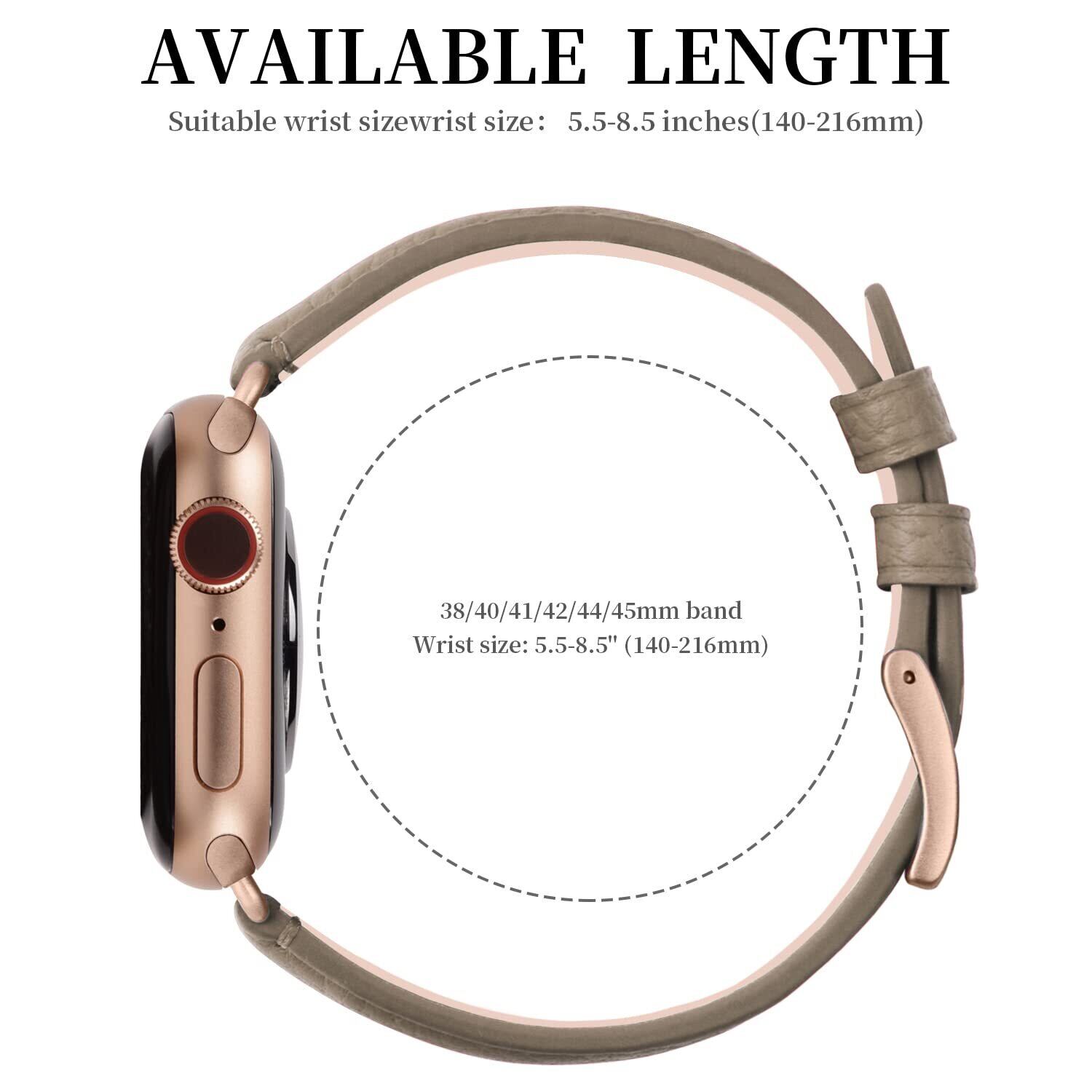 アップルウォッチ バンド 38mm 40mm 41mm 42mm 44mm 45mm 49mm コンパチブルApple Watch レザー ベルト 本革 柔らかい おしゃれ 保護ケース付き レディース メンズ iWatch SE/SE2/Series9/8/7/6/5/4/3/2/1に対応(38mm 40mm 41mm、エレファントグレー+ローズゴールドバックル)