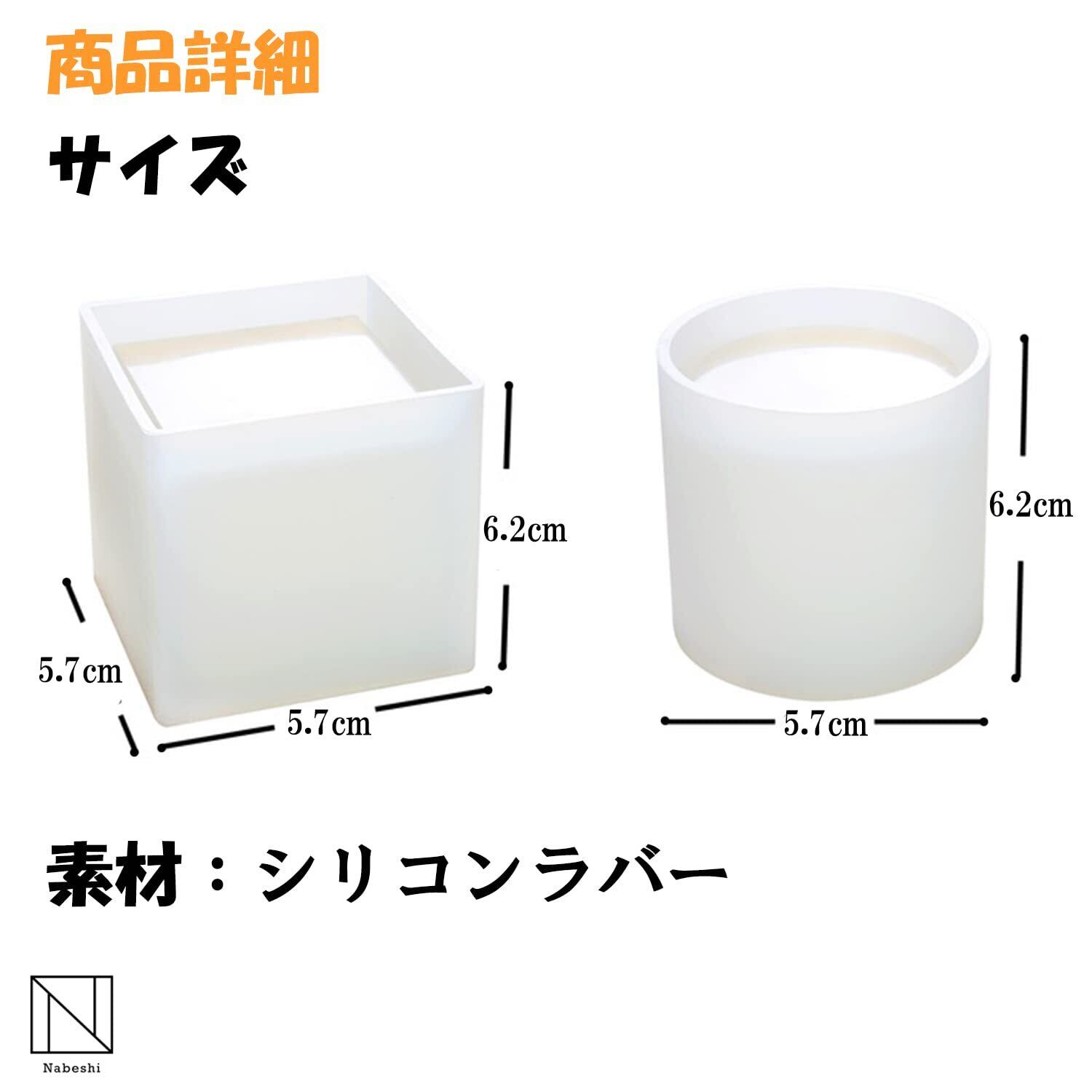 【サイズ】円柱型:直径5.7cm×高さ6.2cm、正方型:縦5.7cm×横5.7cm×高さ6.2cm