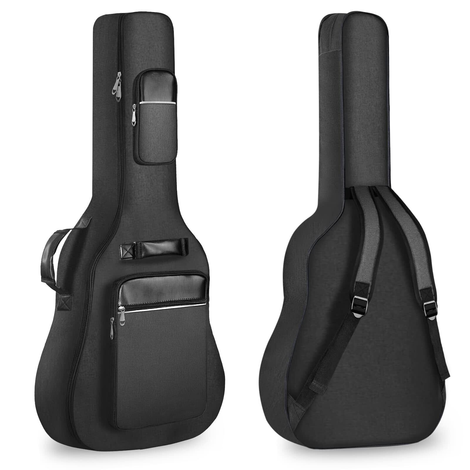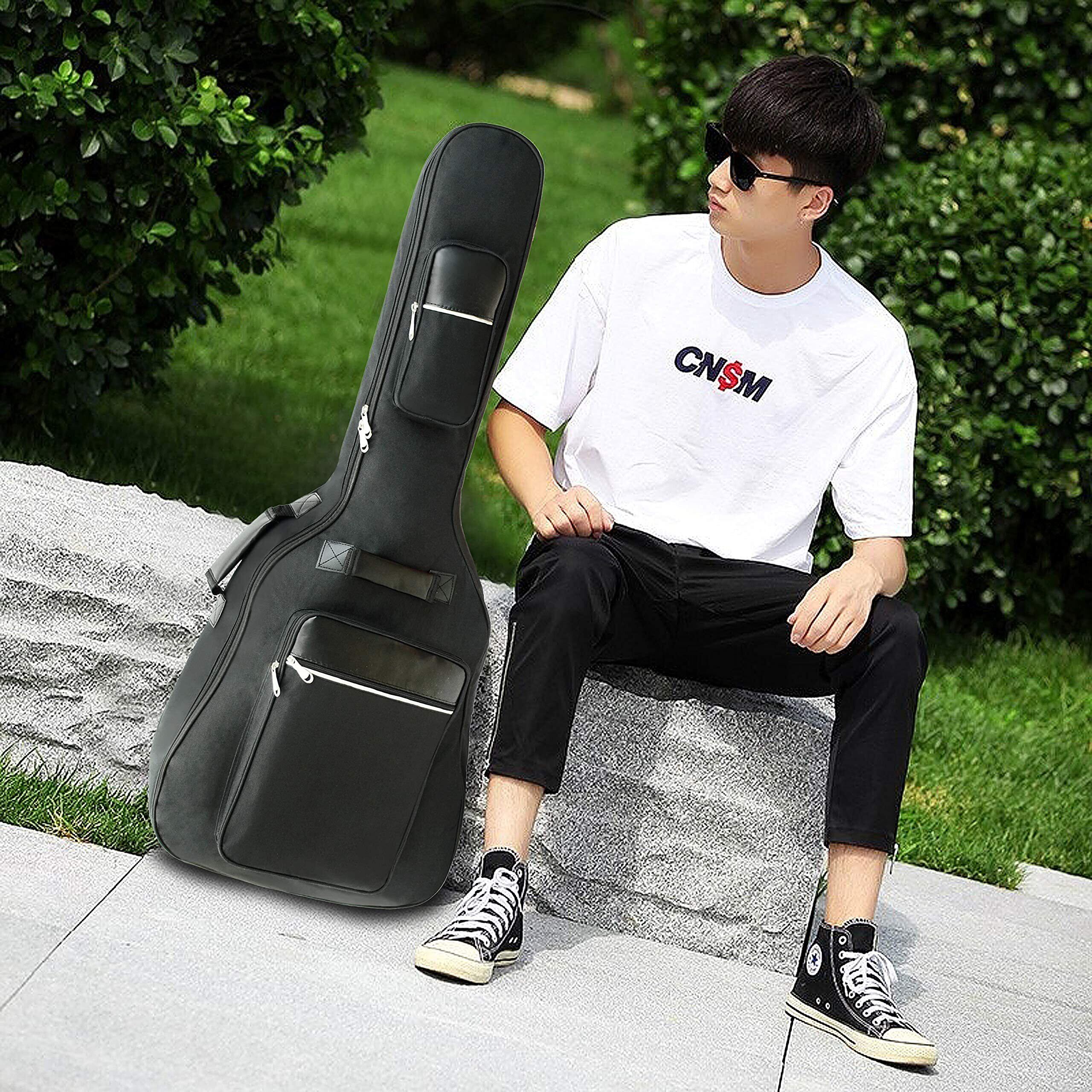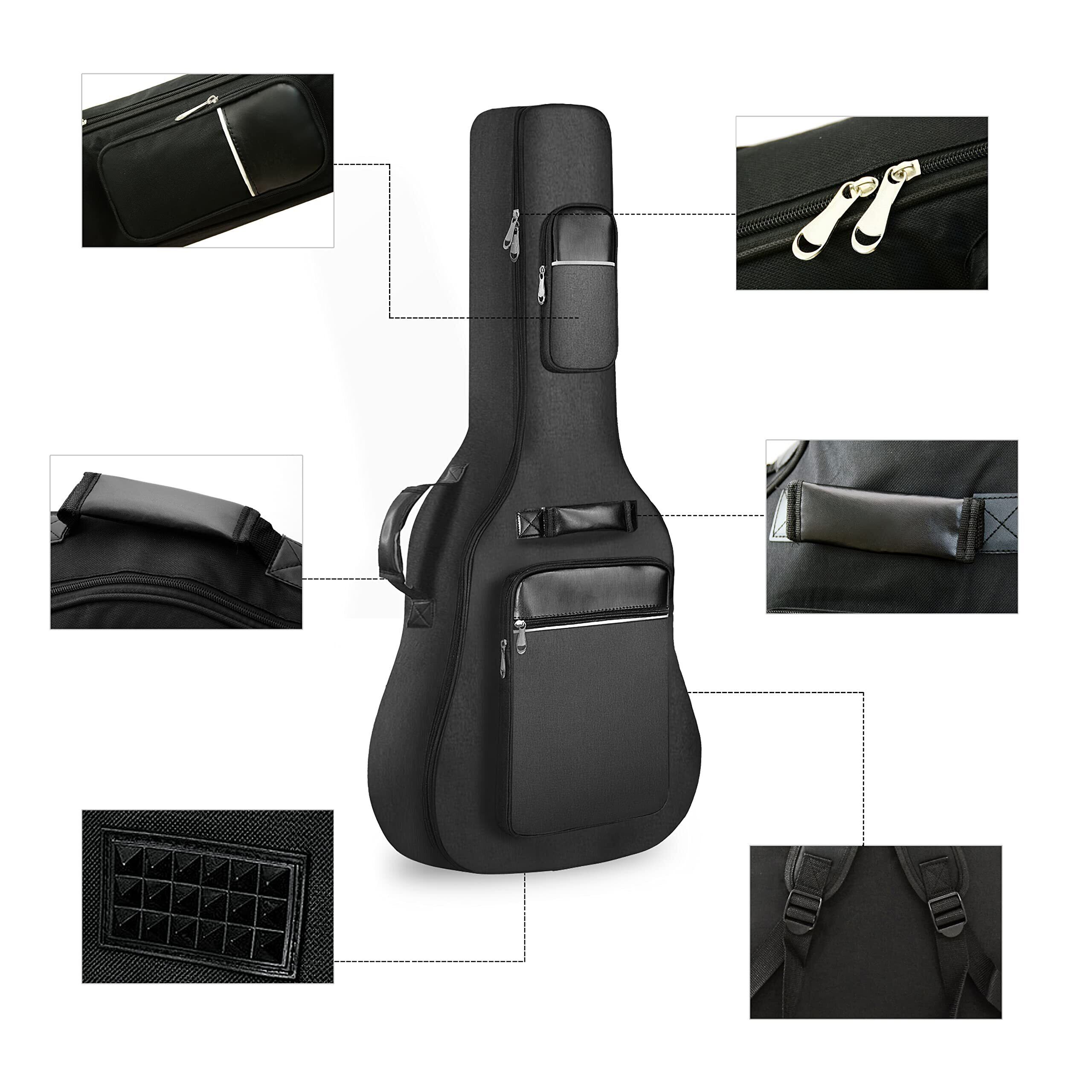 アコースティック ギター ギグバッグ 40-41インチ用 ギターケース 8mm スポンジ ギターソフトケース 楽器バッグ 軽量 厚い肩 大容量ポケット 肩掛け 手提げ 600D防水 オックスフォード布 ブラック