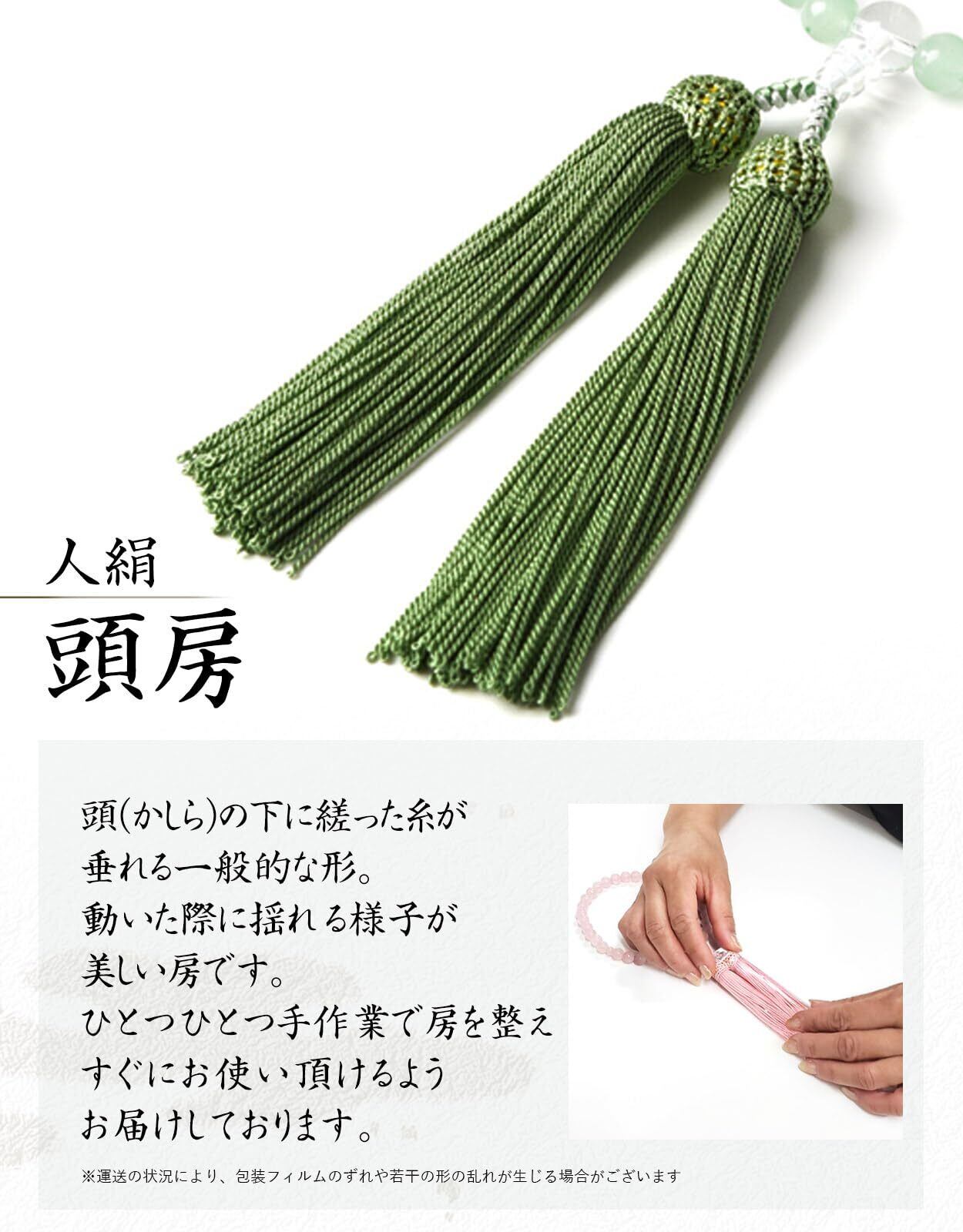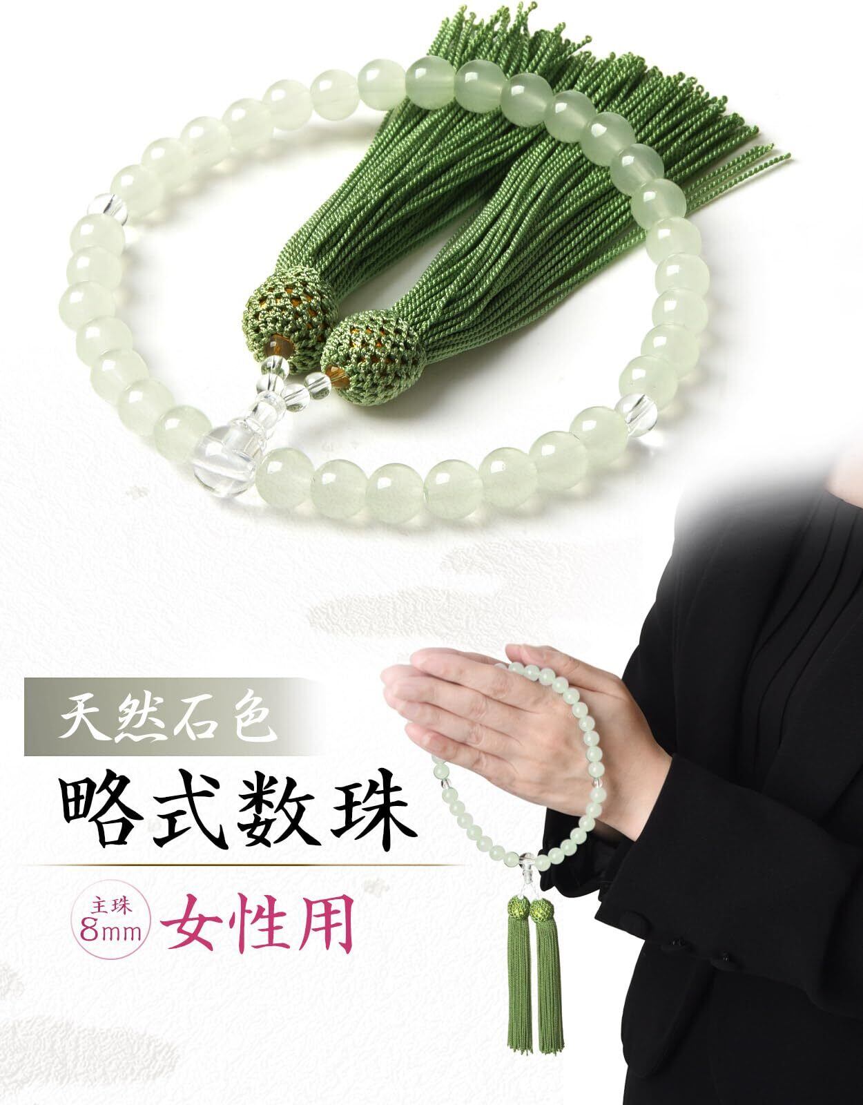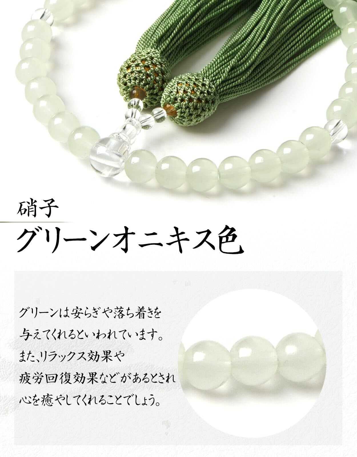 【EsuonHappiness】数珠 女性用 8mm 頭房 硝子 略式数珠 すべての宗派で使える 選べるお色 法事 葬儀 数珠袋付き 天然石色 人絹房 (グリーンオニキス色)