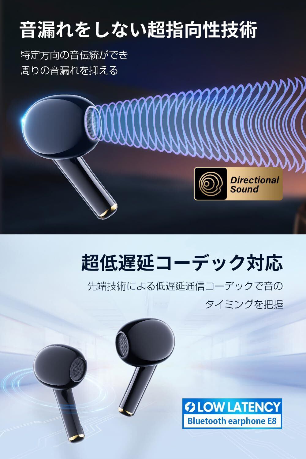 【Bluetooth5.3技術&自動ペアリング】インナーイヤー型完全ワイヤレスイヤホンはBluetooth5.3チップを採用し、従来より省エネの上に安定性を保護でき、「音遅延」も減少し、Bluetooth信号を左右同時に伝送することにより、接続時にはより安定伝送、より低電力消費、より高速化を実現しました。デバイスとの接続は初期登録後難しい操作が不要で、ケースから取り出すだけで自動的にペアリングされ、手間が省けて使い勝手が向上します。
