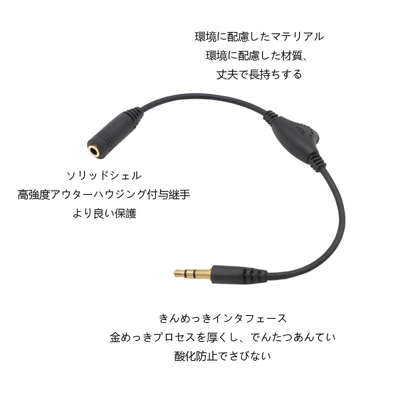 3.5 mmイヤホン音量延長ケーブル25 cm【ダイヤル式音量調節】ケーブル付きダイヤルの音質劣化防止白ノイズ防止イヤホン延長ケーブルオーディオケーブル、黒