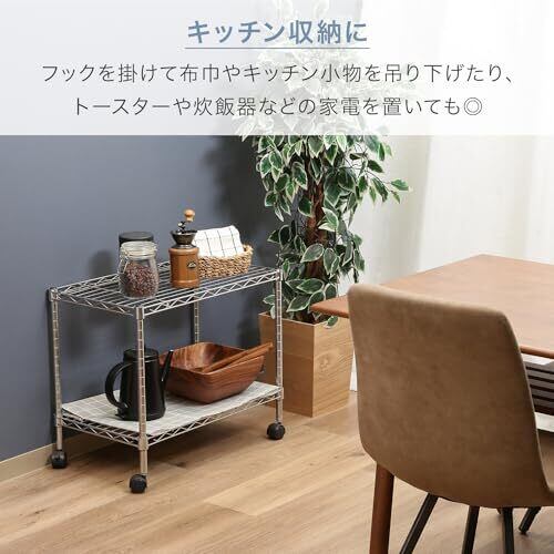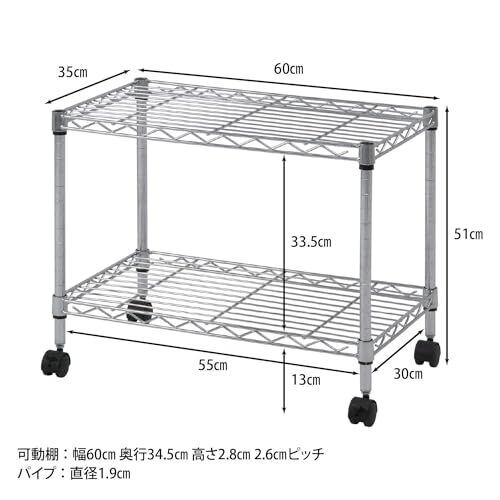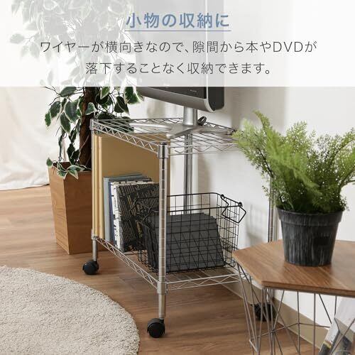 不二貿易(Fujiboeki) テレビ台 ローボード 2段 幅60×奥行35×高さ51m シルバー キャスター付き メタルラック 組立商品 91783