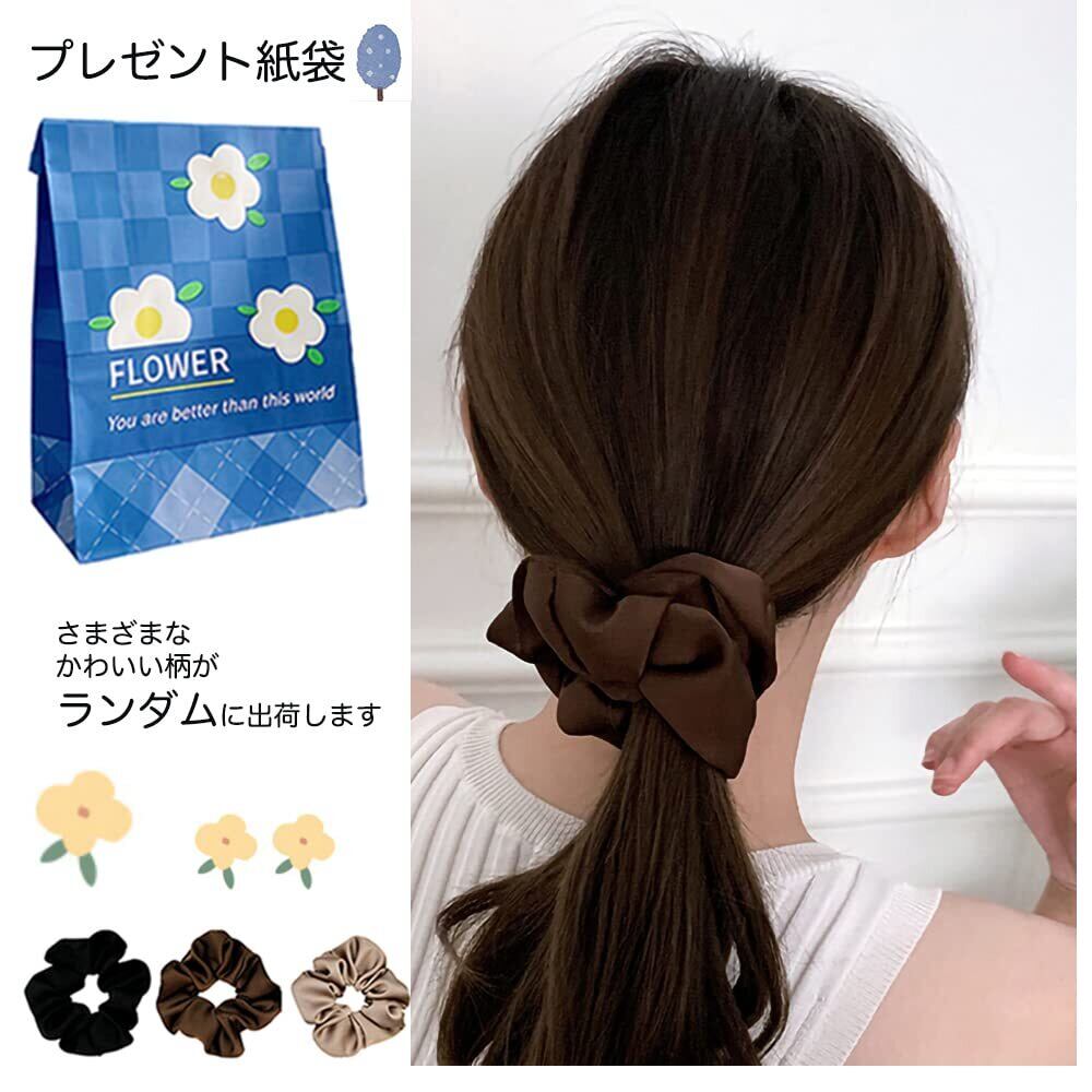 ・【セット内容】:シュシュ×3個 ・【カラー】:ブラック + キャメル + ベージュ