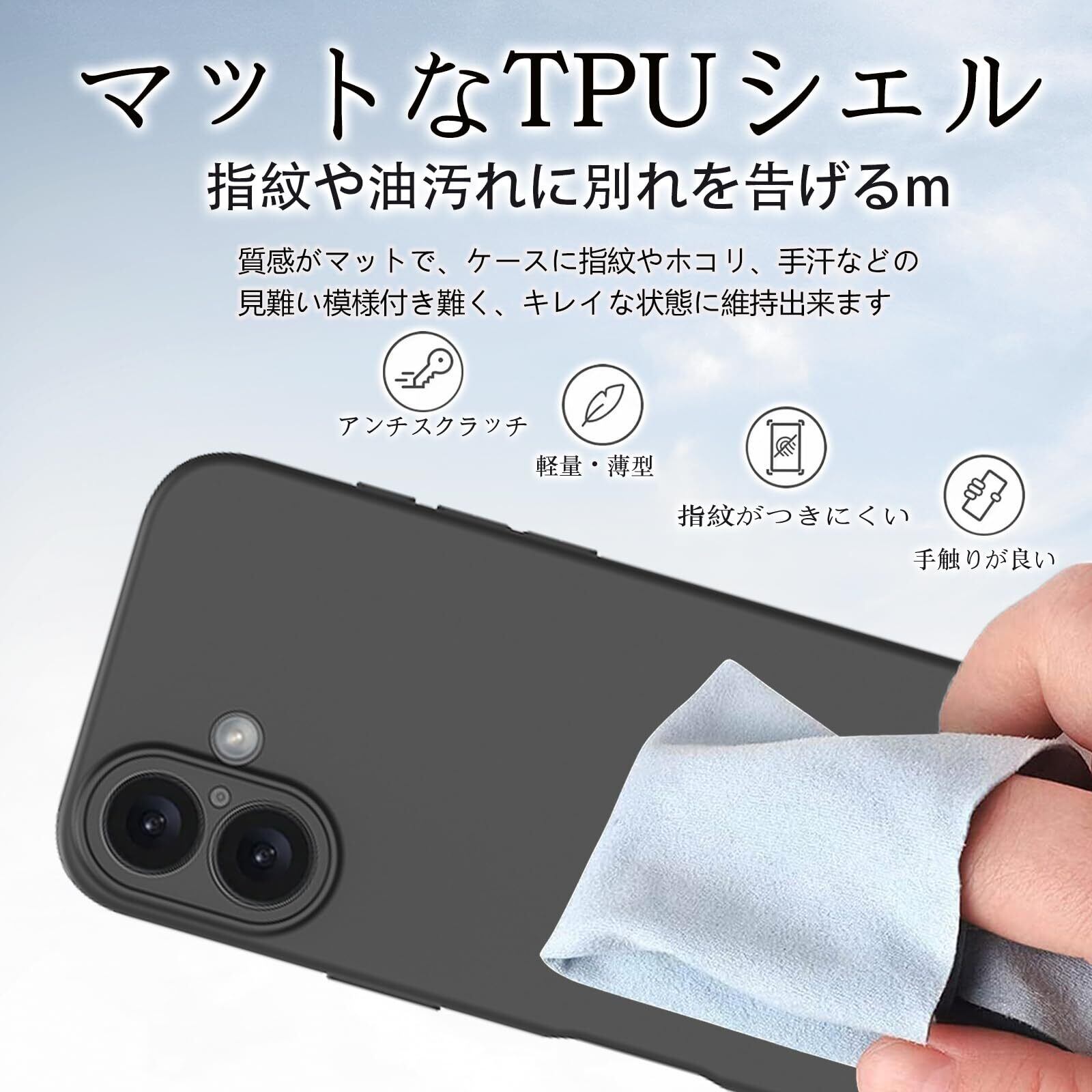 iPhone 16 Plus ケース iPhone 16Plus カバー マット 米軍MIL規格 耐衝撃 マット質感 超薄型 TPU 指紋防止 柔軟なTPU素材【薄型・軽量・傷防止・落下防止・滑り止め】iPhone 16Plus カバー (ブラック)