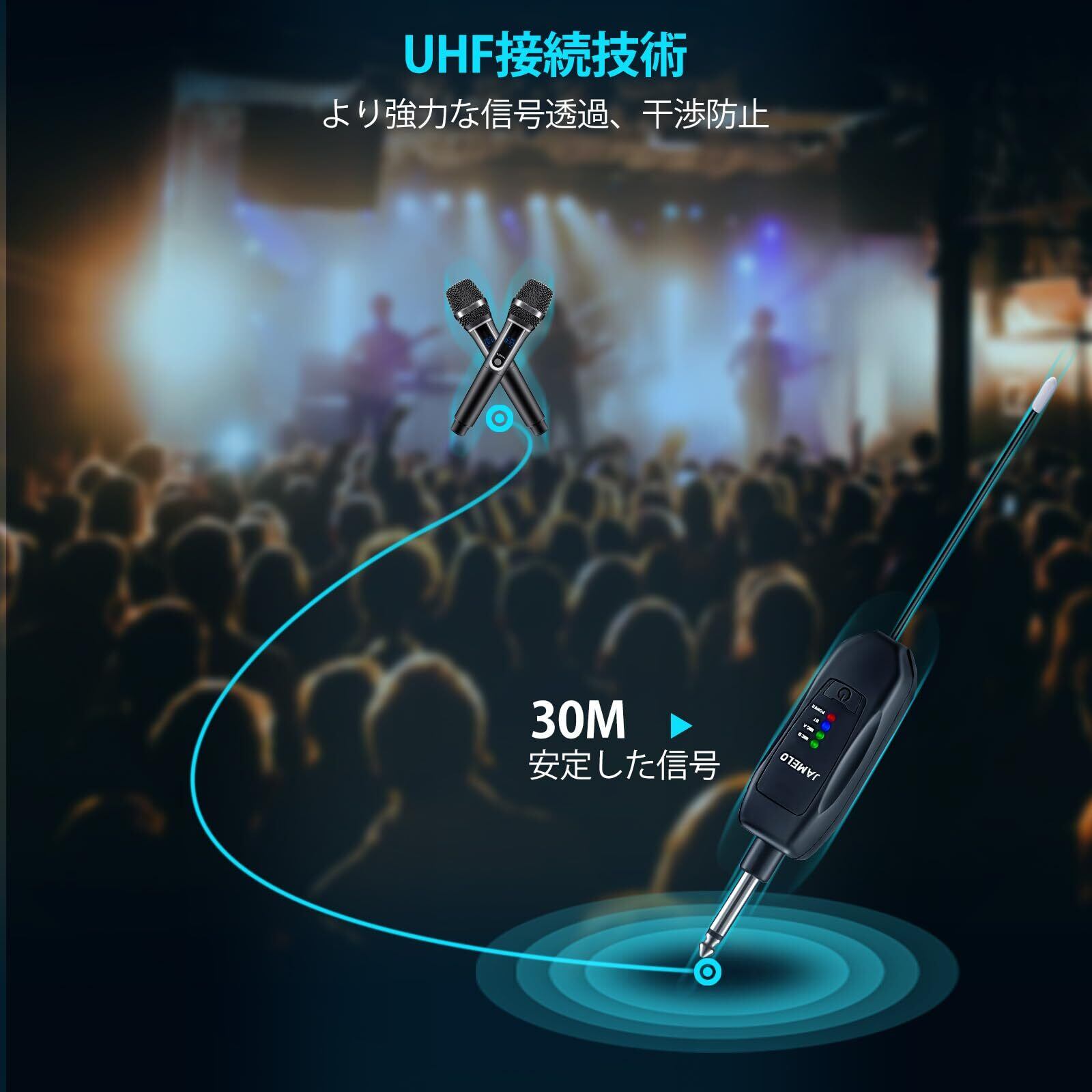 【作動距離100フィート】UHF超高周波接続、より強力な信号浸透と干渉防止、かなり安定した信号接続は、カラオケやステージパフォーマンスに最適です。