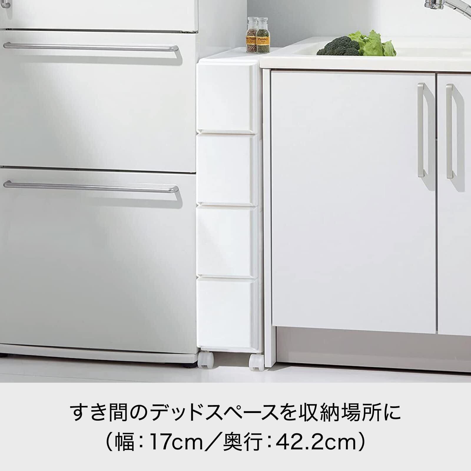 ライクイット (like-it) キッチン 収納 すき間収納 引出し ラグドロワ スリム 4段 ホワイト 約幅17x42.2x83cm LDS-4 隙間収納 17cm 洗面所 机横収納 隠す収納