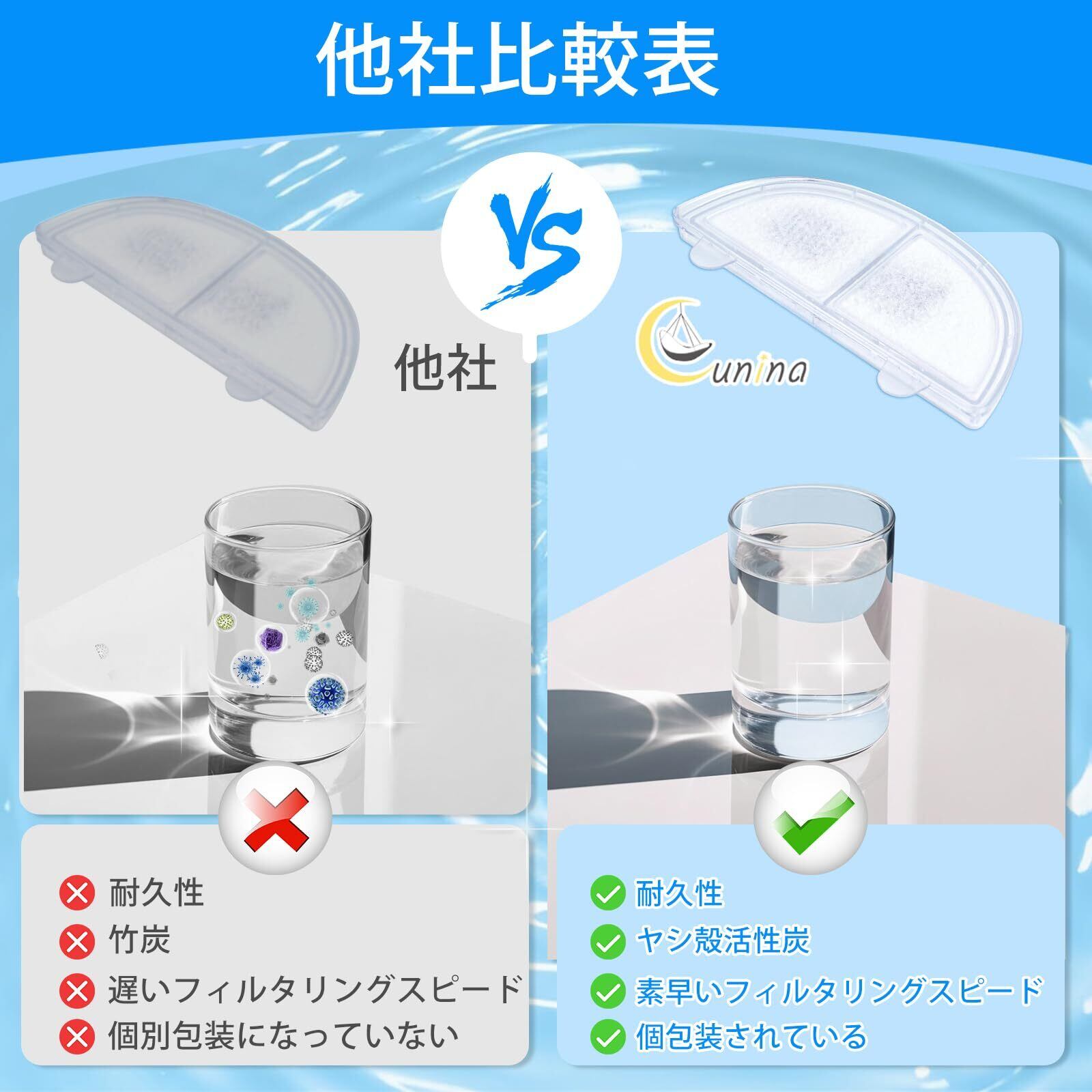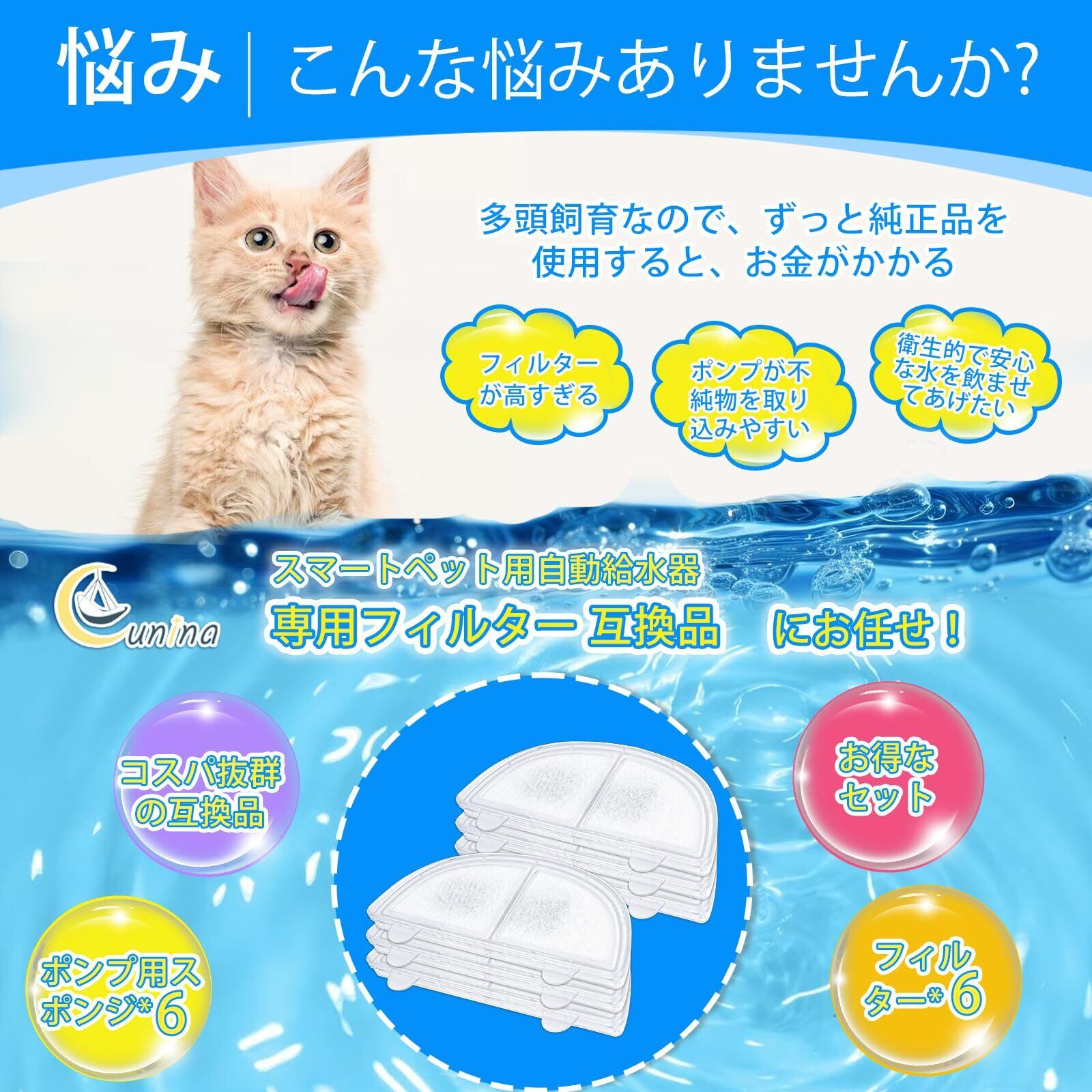 商品特長 ペットの毛、塩素、重金属など不純物をろ過し、硬水軟化、細菌の繁殖を抑える
