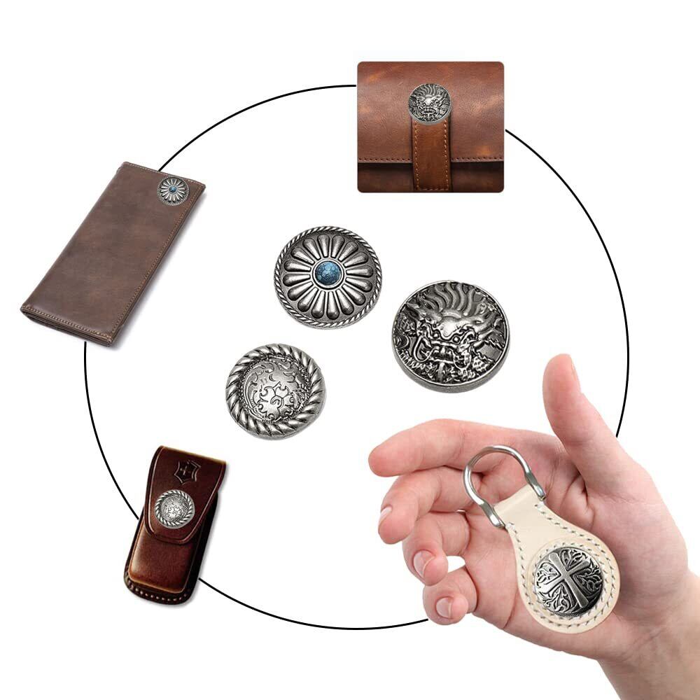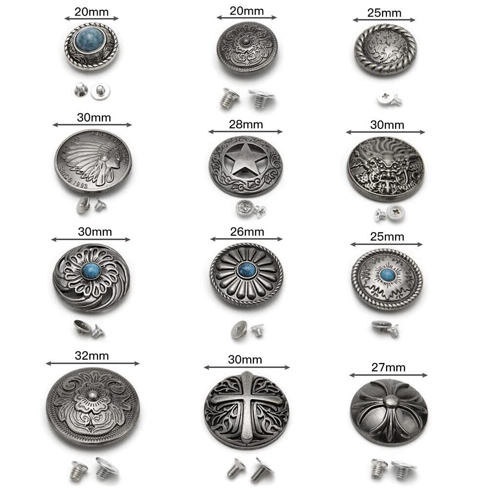 サムコス 12個セット コンチョ ボタン 20mm~32mm ねじ式 インディアン 十字架 ターコイズ 唐草 龍 五芒星 クラフト レザークラフト バッグ 財布 手芸 DIY 裁縫 飾りボタン 交換 取付簡単