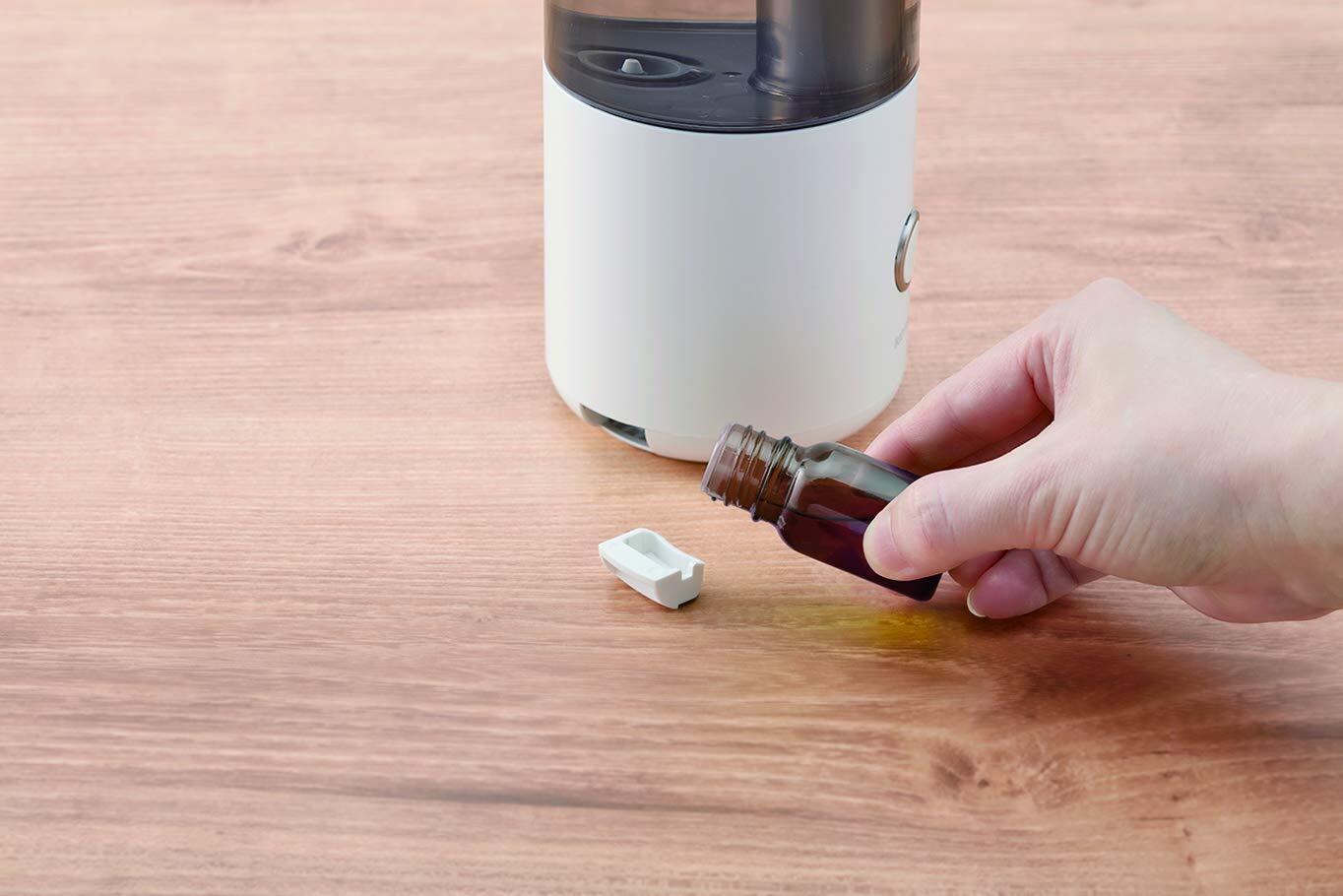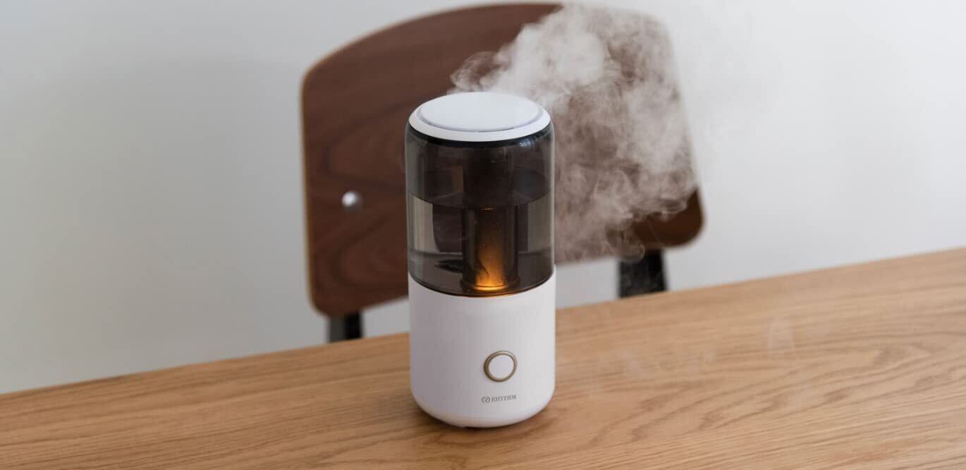 乾燥する季節に清潔なミストとゆらぐあかり、アロマの香りを楽しむコンパクト加湿器です。