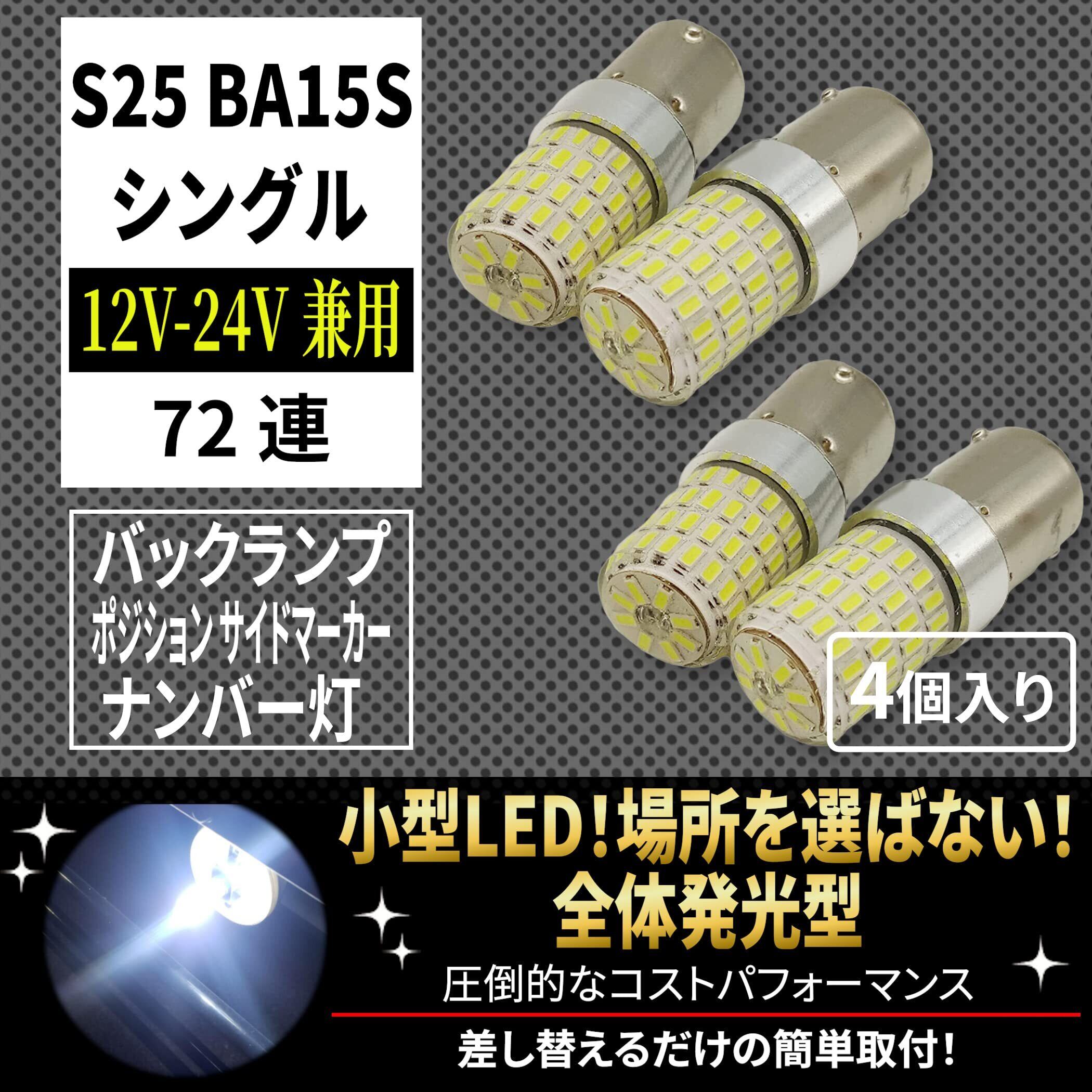 シングル マーカー球 (ホワイト 4個セット) 普通車 トラック用品 24V 12V 兼用 S25 LED 72連 平行ピン LEDバルブ 3014 6000K 超高輝度 72 SMD (1156/S25 シングル球 ホワイト 4個セット)