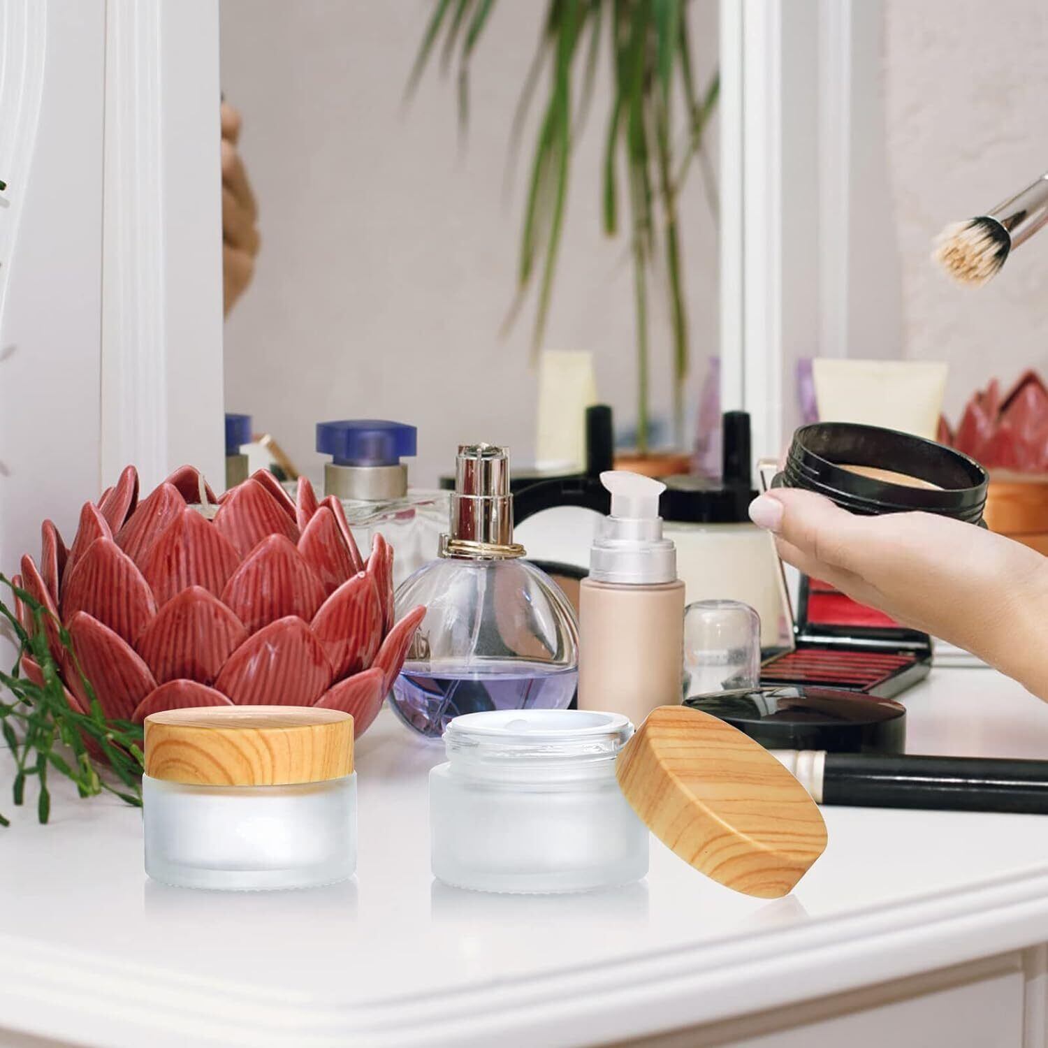 クリーム 詰め替え容器 12個セット ガラス瓶 容量30g 遮光瓶 すりガラスボトル クリーム容器 小分け 保存ボトル パウダーケース コスメ用 詰替え容器 出張 旅行用品 蓋付き