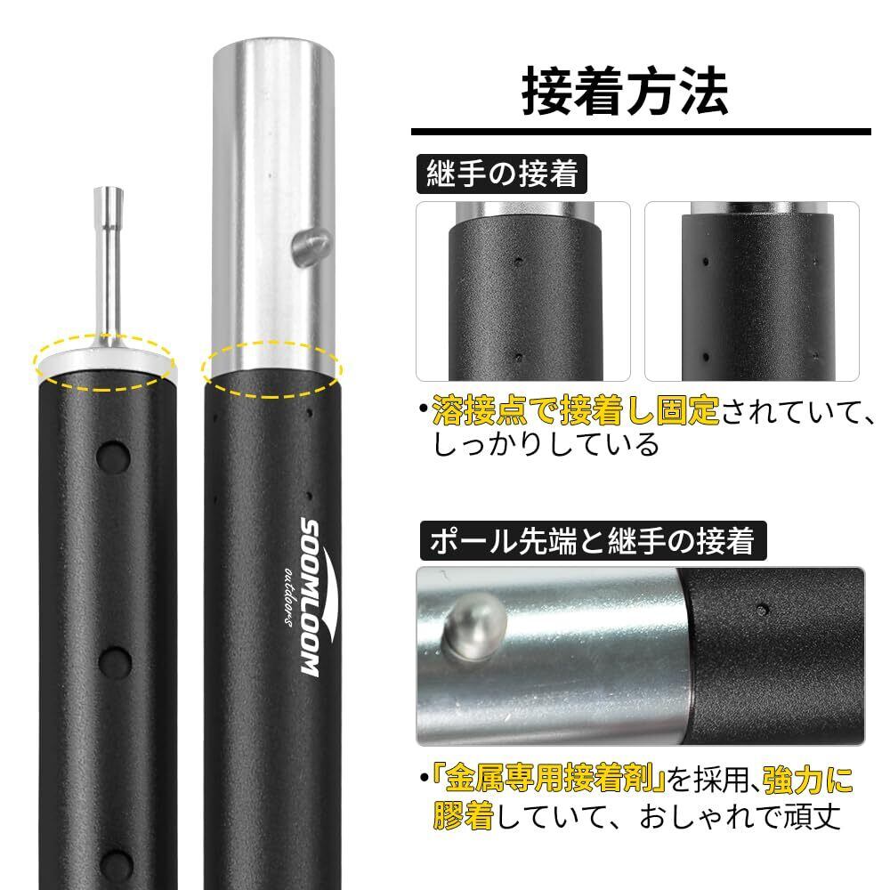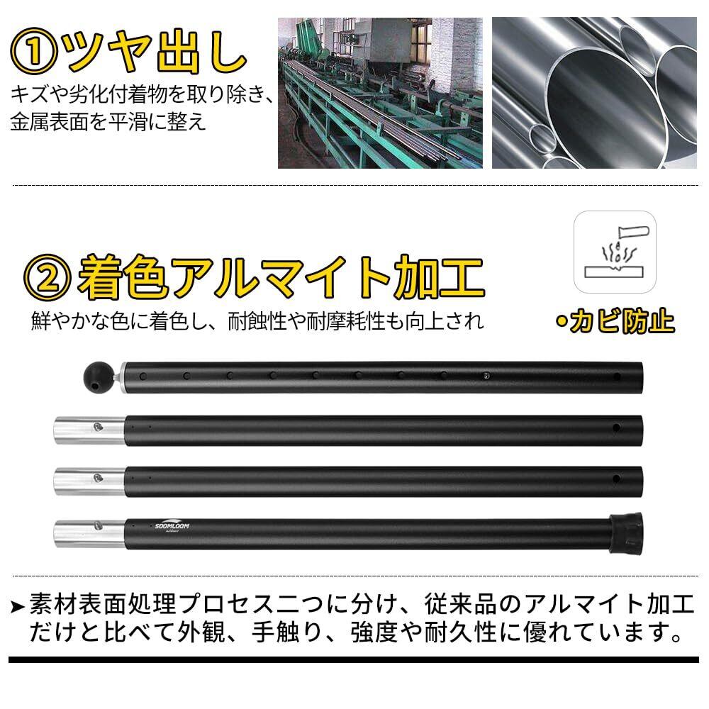 Soomloomアルミポール テント・タープ設営用 A6061アルミニウム 外径33mm 4節連結 1本/2本入り 分割式 プッシュボタン式 多段階調節可能 キャンプギア