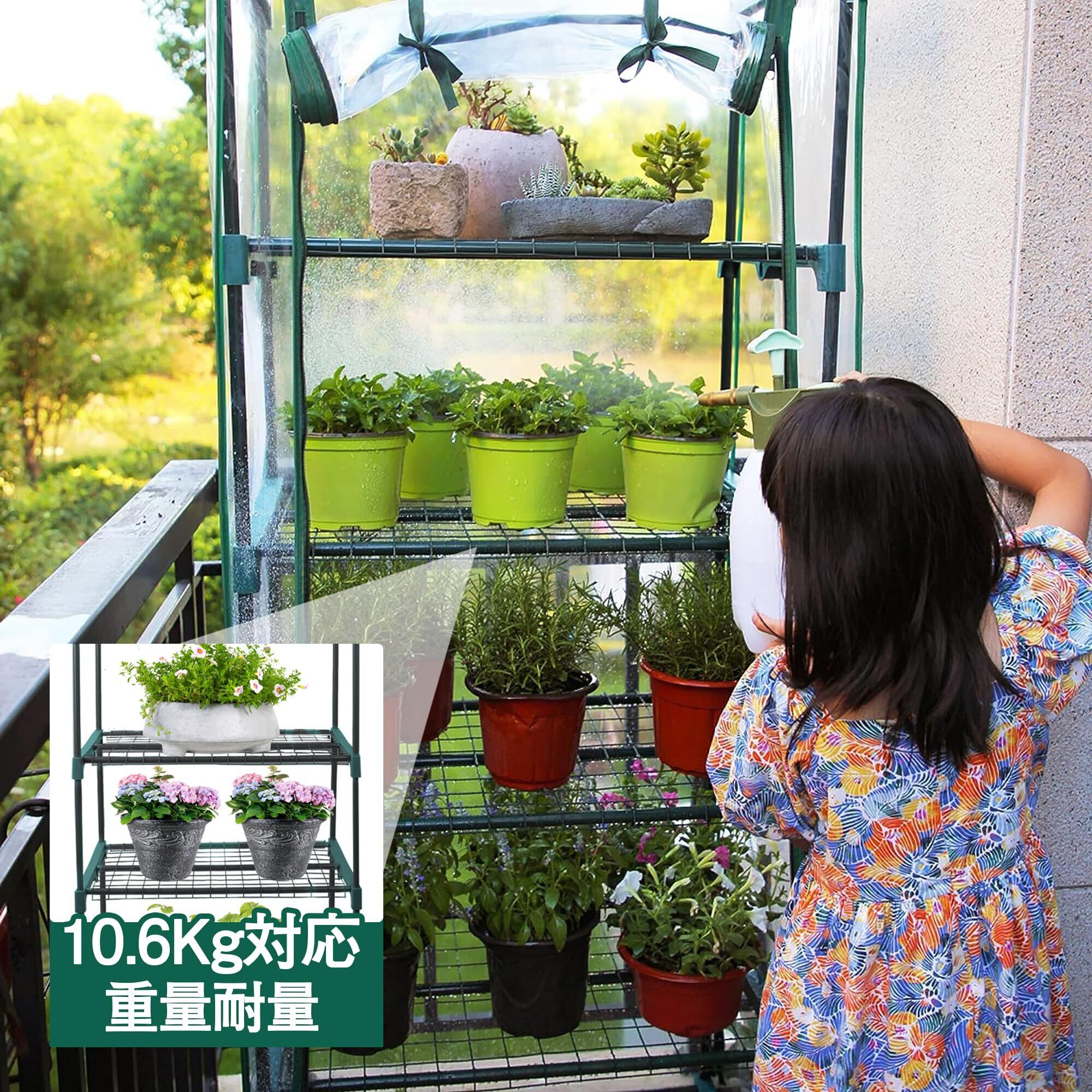 このビニール温室は、植物と観葉植物を育てることができる。植物だけでなく、野菜の育苗ハウスとして、植物の生育期に保温と防寒に効き、大切な植物を風や雨、霜から守り、虫除けは普通のプランターより効きます。ベランダやガーデンに置けてもいいです。